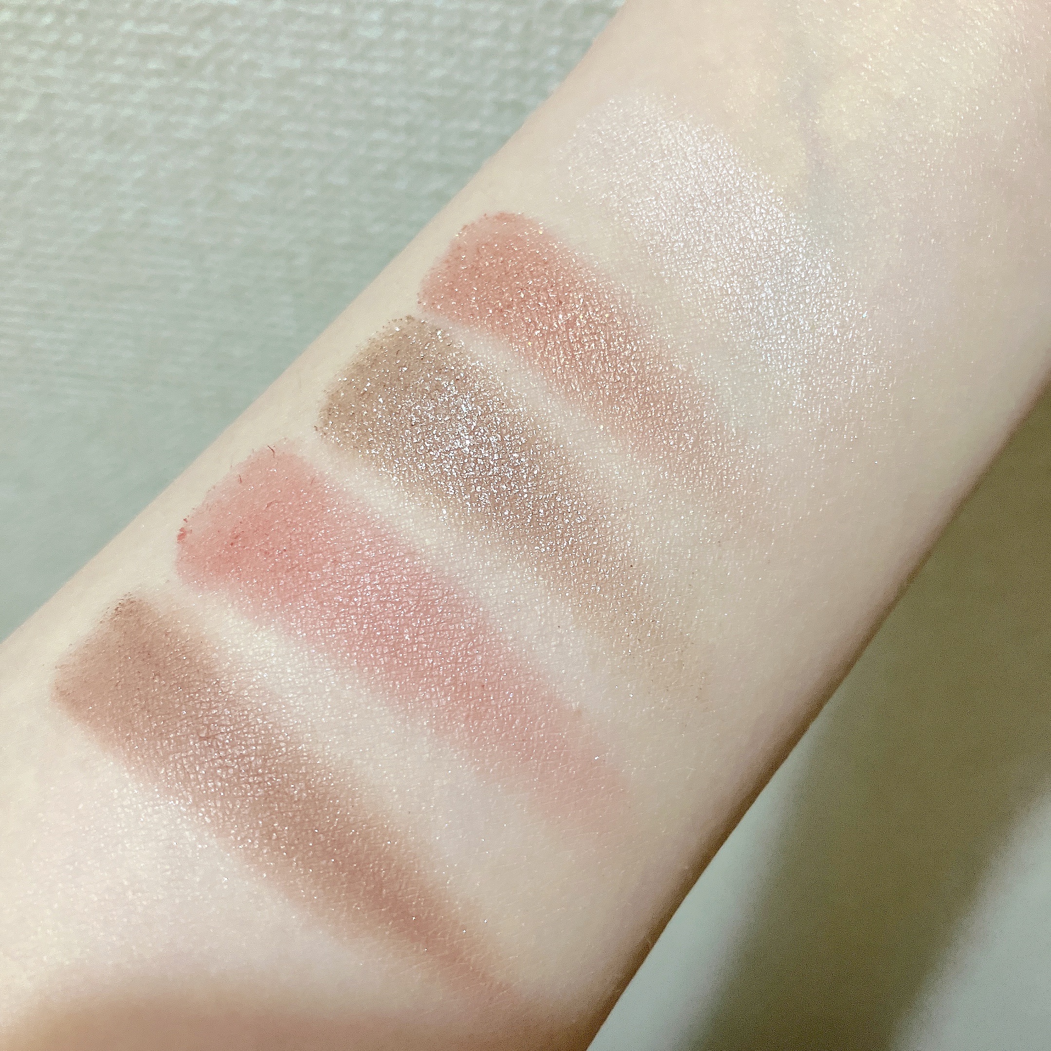 最後にもう一回使ったらこんっな可愛かったのあなた!?と可愛さに再度気づいてしまい、断捨離するつもりが一気にお気に入りになってしまったアイシャドウです 右上のラメがかわいすぎた…!!!キラッキラになるけどグリッターみたいな大粒なラメじゃないからゴミ化しないし、まぶたに乗せた時ひさしぶりにドキドキしました😳 全体的にしっとりとした粉質で、ラメをあんまり使いたくないときでも右下のピンクだけでもシマーなラメで可愛いのでおすすめです!