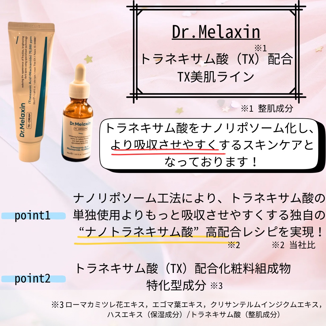 ˗ˋ𝗗𝗿.𝗠𝗲𝗹𝗮𝘅𝗶𝗻塗るシミ消しゴムセットˊ˗TXアンプルRX&TXクリーム⋆•••••••••••••••••••••••••••••••••⋆シミの飲む薬に使われる#トラネキサム酸ナノリポソーム化しより吸収させやすく開発!(トラネキサ...