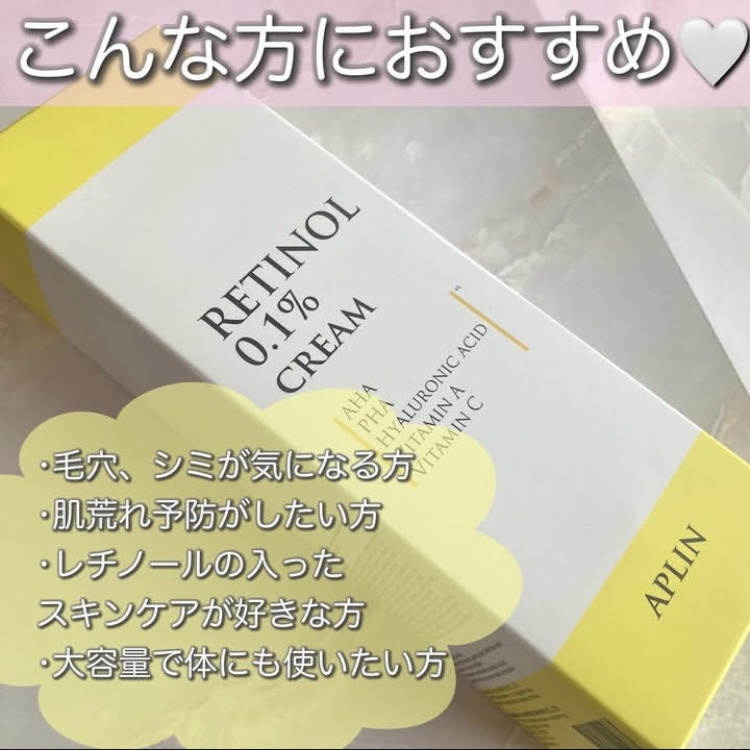 顔やボディ、全身に使えるレチノールクリーム✨ レチノールやAHA・PHA・ビタミンなどの整肌成分が含まれていて毛穴やシミ・くすみケアをサポート☝️ 柔らかめのテクスチャーでさらっと塗りやすくてしっとり仕上がるよ😌 べたつかないので体に塗ってすぐ服着ても大丈夫🫶 150gの大容量で全身にたっぷり使えるのが嬉しいよね❤️