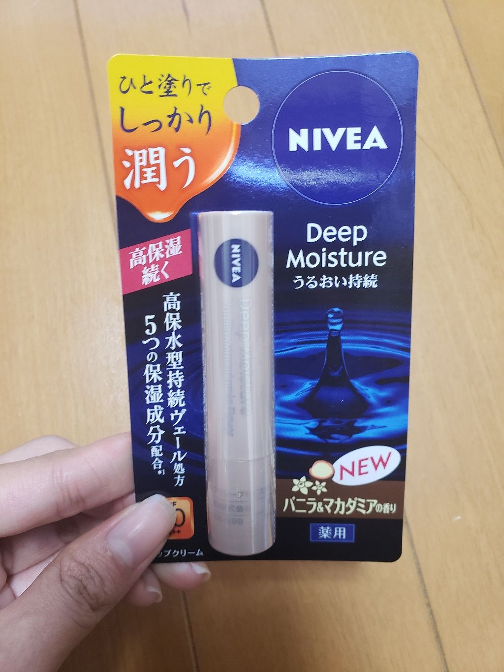 唇ふっくら、しっかり保湿力が続く♪ NIVEA DEEP Moisture SPF26 PA++ バニラ&マカデミアの香り 潤いの持続力があるから日中も唇の乾燥を気にせず過ごせるし、口紅のノリも良い感じ💄 保湿成分にはちみつ🍯やローヤルゼリーエキスが配合されてて、夜はリップパック代わりにもなる☺️