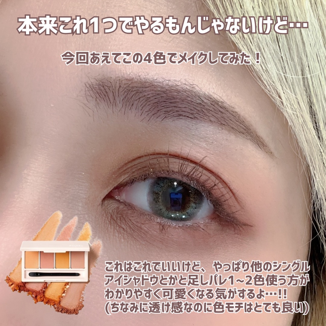 使える色だけ集めたという4色のアイカラーパレット 単色でも、この4色パレットのみでも、他の手持ちアイシャドーと組み合わせても良い便利な設計になっています♪ 発色は、パレット見たままの色が出て高発色 01番は暖色系4色オールマットタイプですが、ふわっとなめらか透明感があり、ナチュラル感を出しつつ引き締まると思います この足しパレシリーズ他にもラメが足せる03、ハイライトとローライトパレットの04、抜け感アイブロウ05(これは私持っていて便利で愛用中)と色々な種類があって、楽しい😆し便利👍🏻✨