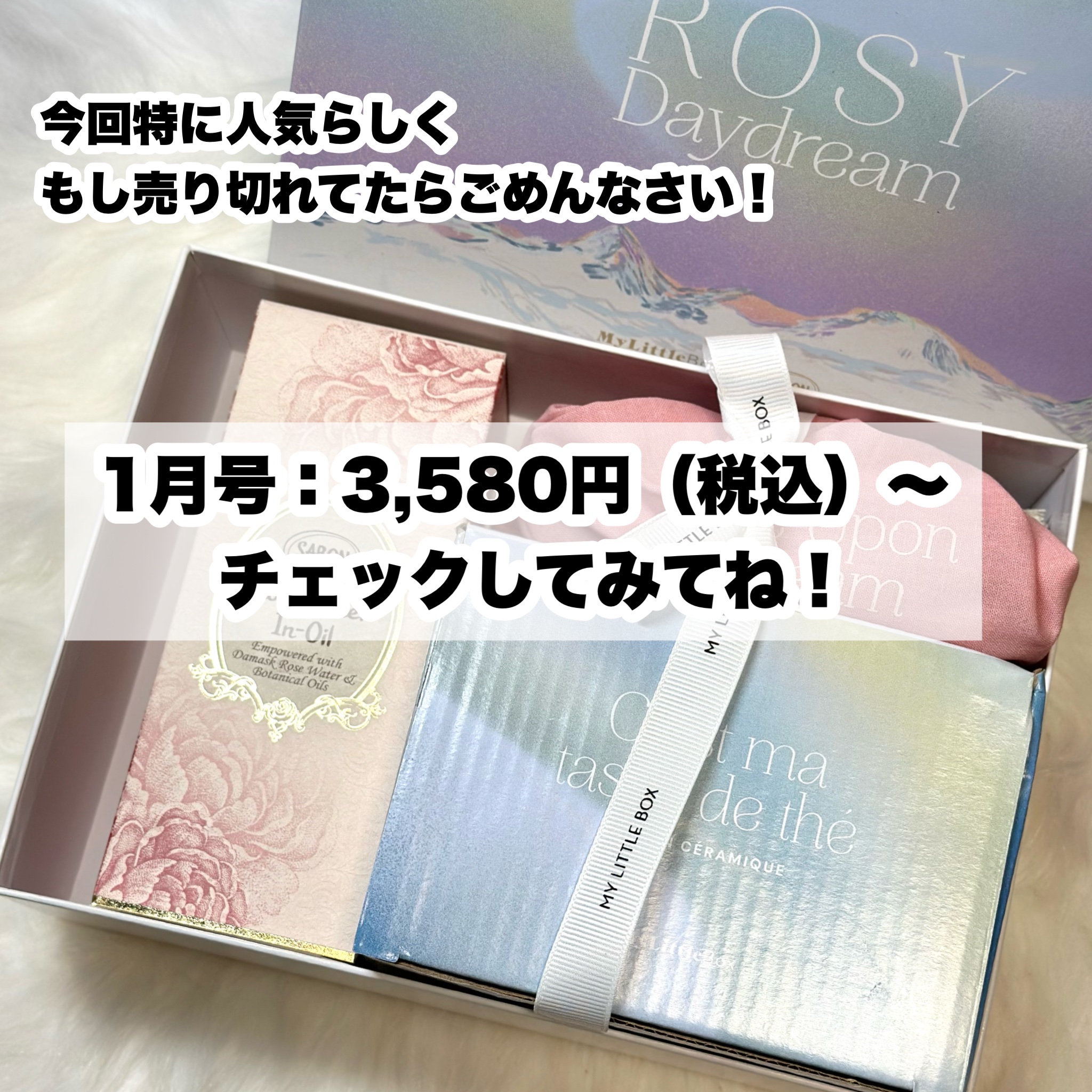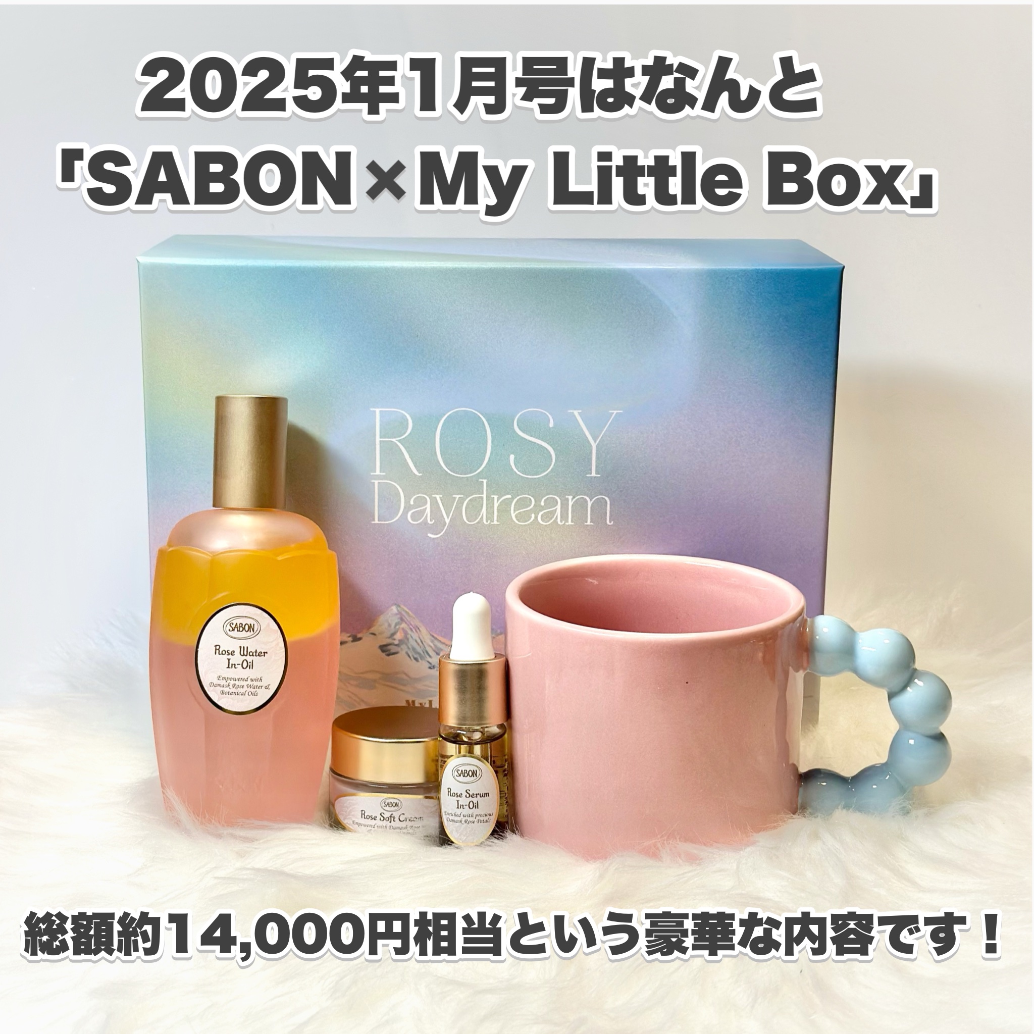 2025年最初のテーマは「ROSY Daydream」 今回はなんとSABONとの特別コラボレーション 豪華なSABONのスキンケアアイテム3点に加え、オリジナルアイテムも入った贅沢な内容です.·˖* ローズウォーターインオイル(9mL)3種のボタニカルオイル*がブレンドされた2層式のミスト化粧水 コスメ好きやサプライズが好きな人におすすめ 日常にときめきをプラスするマイリトルボックス、ぜひチェックしてみてね🎀