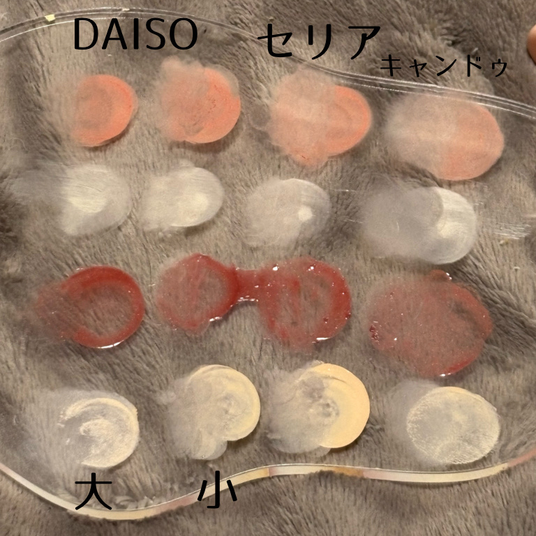 DAISOでもシリコーンリップブラシを見つけたので購入しました DAISOと粧美堂が蓋があるので持ち歩きに良いと思います 個人的には粧美堂がピンクでかわいいので粧美堂を持ち歩きたいと思います