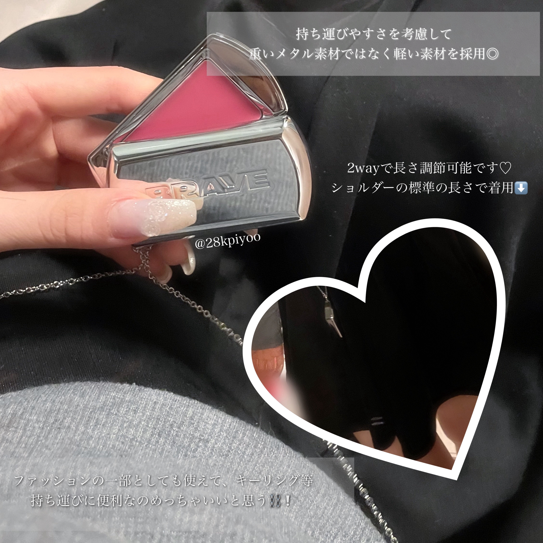 - スライディング容器に入れたBRAYEだけの感性を込めたリップ&チーク。 全10色展開。リンゴ種子オイルが含有されており、リップコンディショニングケアまで。 スッと体温に溶けるバームタイプで高発色で密着力の高いテクスチャー。 専用のストラップとブラシで自分なりの個性あふれる「ユニークなカスタムコスメ」としても、ファッションアイテムとしても大活躍できます。
