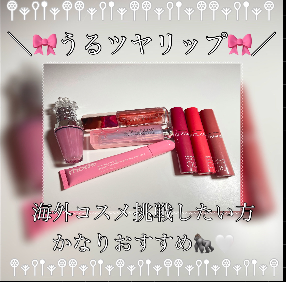 ☪︎𓂃𓈒𓏸 ⥄NEWジェルフィットグロス𓂃𓈒𓏸𓐍ALOHA🤟🎄ゴリラはB型です🦍𓂃𓈒𓏸Qoo10メガ割で買ってみたジェルフィットグロス私個人的にAMUSE好き❤️ただこの形のリップ横にして保管すると時間経つと液漏れするのがちょっと......