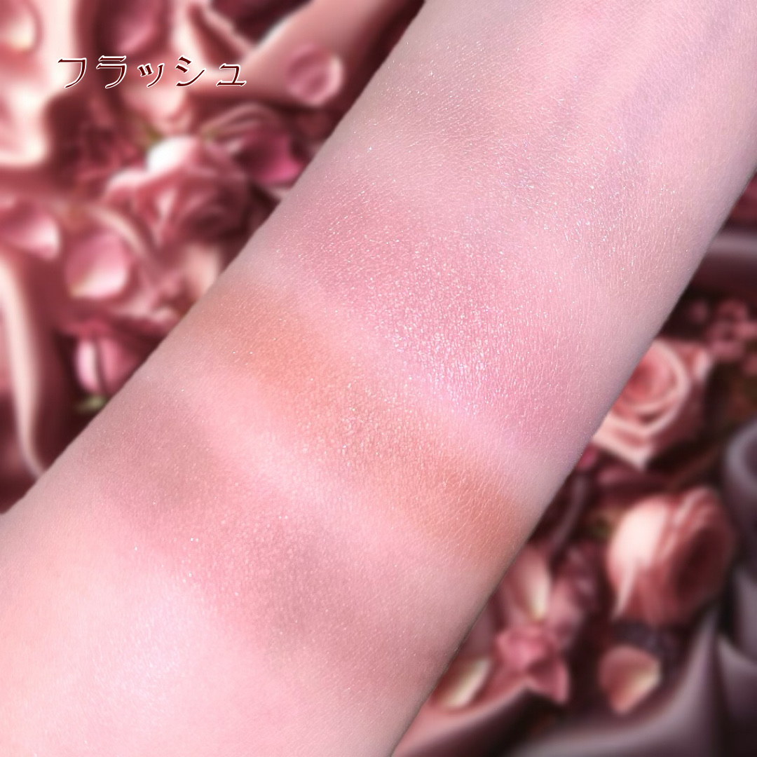 やっぱり可愛い…! 思ったよりコンパクトなサイズ感のアイシャドウパレットでした! このパレット全カラー使いやすい!! アイシャドウパレットのブラウンカラーは2色とも柔らかい発色なので使いやすい♡ そしてパールシマーのラメ感が可愛すぎる♡ 全体的に淡く柔らかい発色なのでとくにナチュラルメイクが好きな方におすすめしたい 𓂃 𓈒𓏸
