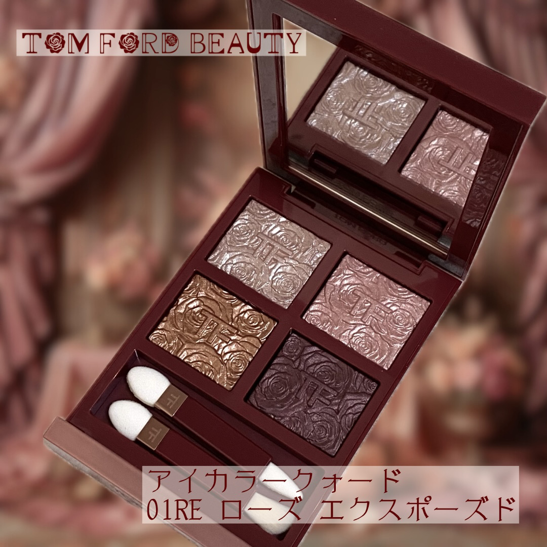 薔薇の刻印が素敵な限定クォード🌹✨ やっぱり粉質最高なトムフォード❤︎ 今回も使いやすいカラーばかり✨ 艶感もさすが✨ パケもローズカラーで特別感満載! 個人的には右上のピンクカラーが気に入りました❤︎