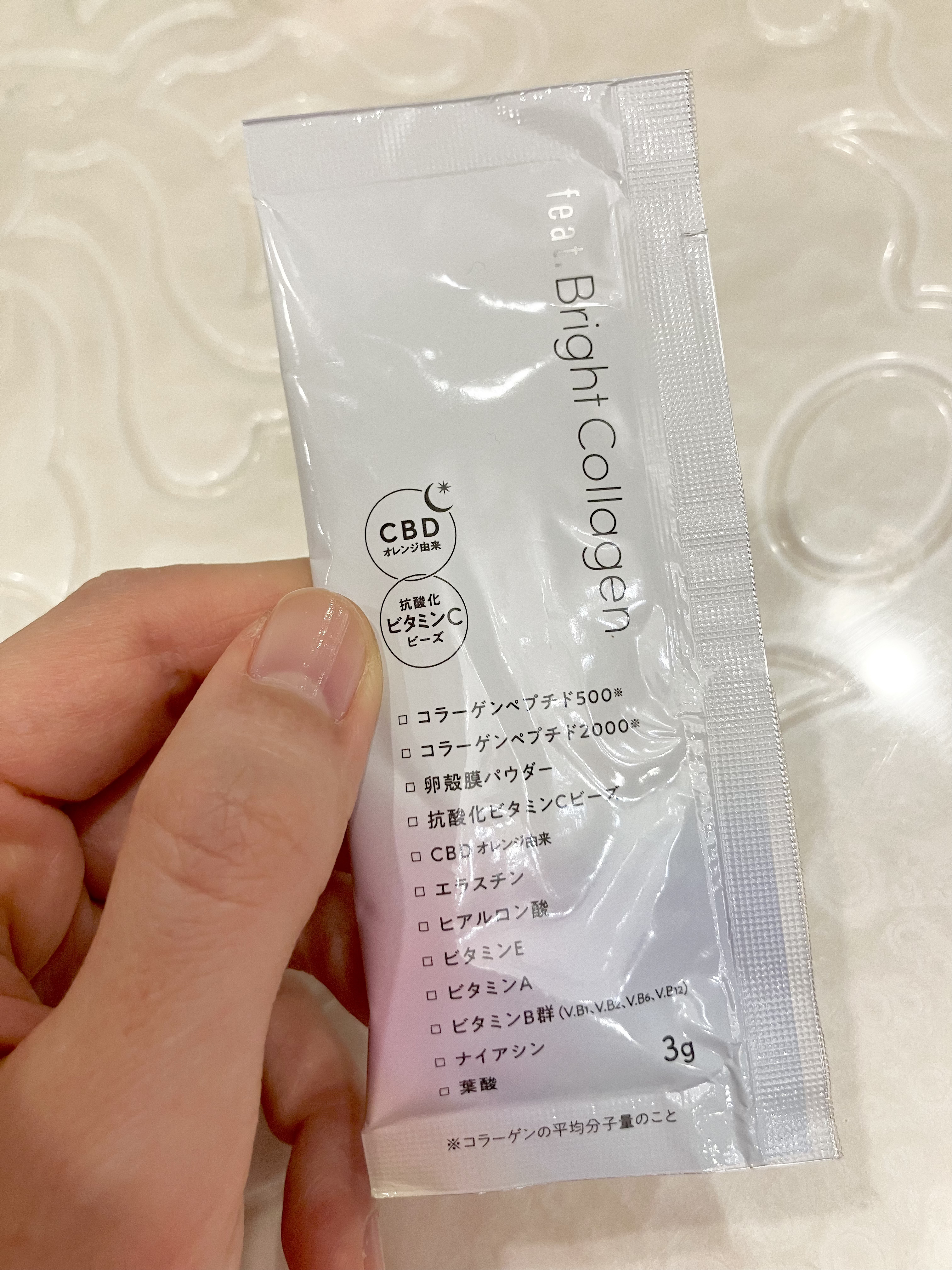 - サイズの異なるコラーゲンペプチドと、時間をかけてじっくり溶ける多重構造ビタミンCビーズを1包に詰め込んだ、キレイ習慣をサポートする栄養機能食品。多忙な毎日をサポートするアメリカで話題のCBDをはじめ、年齢とともに減少するエラスチンやヒアルロン酸、ビタミンA、ビタミンE、ビタミンB群、葉酸も同時に摂れます。 ●レモネード味●持ち運びに便利なスティックタイプ(そのまま飲んでも、水に溶かして飲んでも) 【栄養機能食品(ビタミンC)】ビタミンCは、皮膚や粘膜の健康維持を助けるとともに、抗酸化作用を持つ栄養素です。 ●本品は、多量摂取により疾病が治癒したり、より健康が増進するものではありません。●1日の摂取目安量を守ってください。●本品は、特定保健用食品と異なり、消費者庁長官による個別審査を受けたものではありません。●食生活は、主食、主菜、副菜を基本に、食事のバランスを。