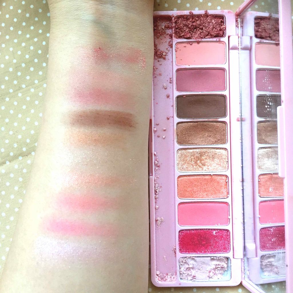 ☆ETUDEプレイカラーアイシャドウカフェインホリック生産終了エチュードハウス時代の遺物(笑)今回は左から5番目のマットなくすみピンクを二重幅より少し広めに塗り、左から4番目のシマーなピンクを二重幅に塗ってみました。5番目のカラーはアイホール...