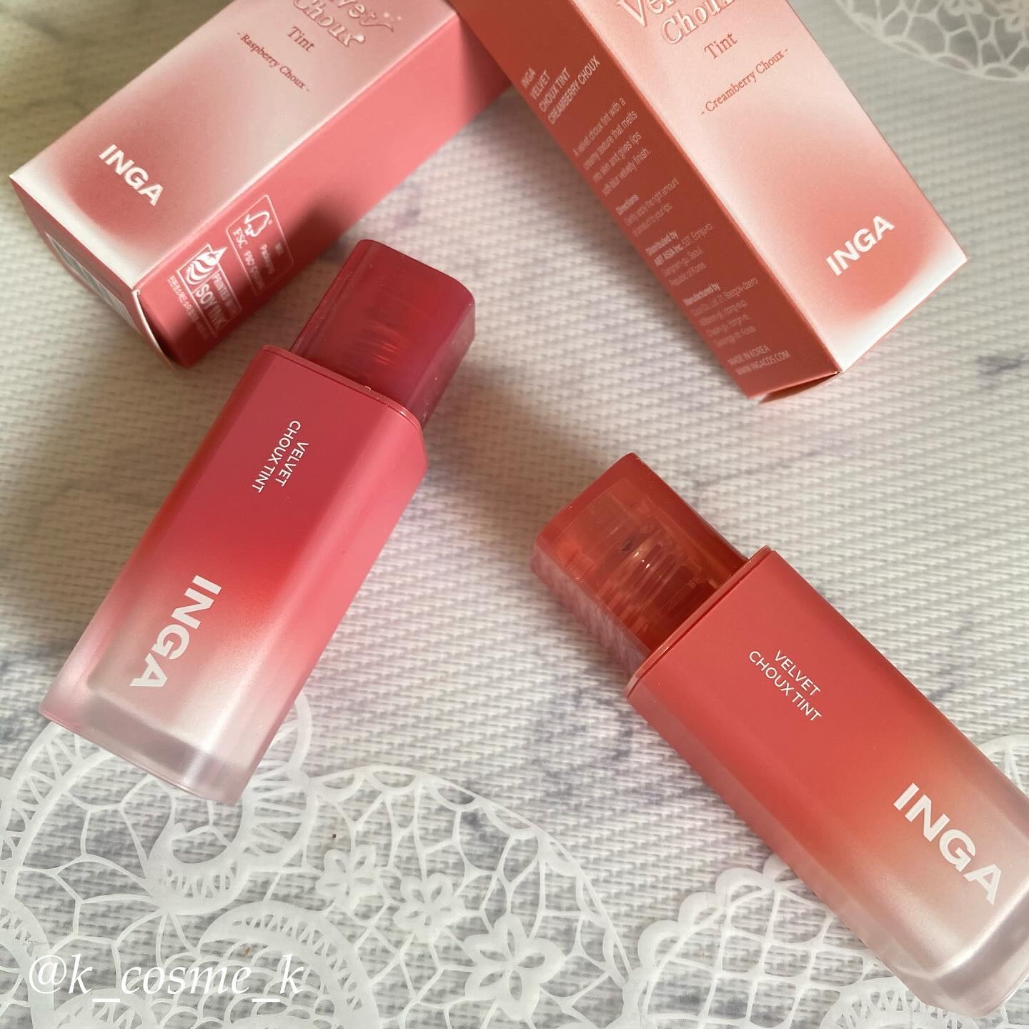 INGA様よりいただきました🫶𓊆INGA/ベルベットシューティント𓊇ふわっとマット質感のティント♡.·*.チークにも使えてマルチユース✌️!ウォーム・ナチュラル・クールの色味展開で、私が使ったのはウォームの2本💄多幸感リップが簡単に作れます𖤐...