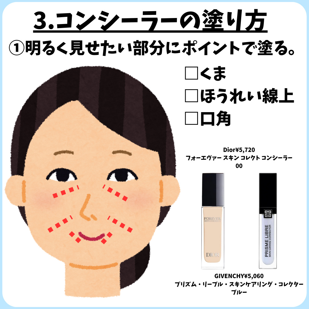 毛穴が気になるところに塗ると、毛穴の凸凹を埋めてくれて、下地やファンデのノリが格段に良くなる!! 時間が経っても毛穴がぽつぽつ目立つこともない!! 美容液成分83%配合。肌に溶け込む極薄膜で、美容液を塗ってるかのような軽さと潤い感。 綺麗なツヤの出る仕上がりになります。 このコンシーラーは、目の下(クマ)・小鼻・ほうれい線・口角 などに塗ると、くすみを飛ばしてくれて顔をパっと明るく見せてくれます。顔が引き締まって見えるので、若見え効果も⭕