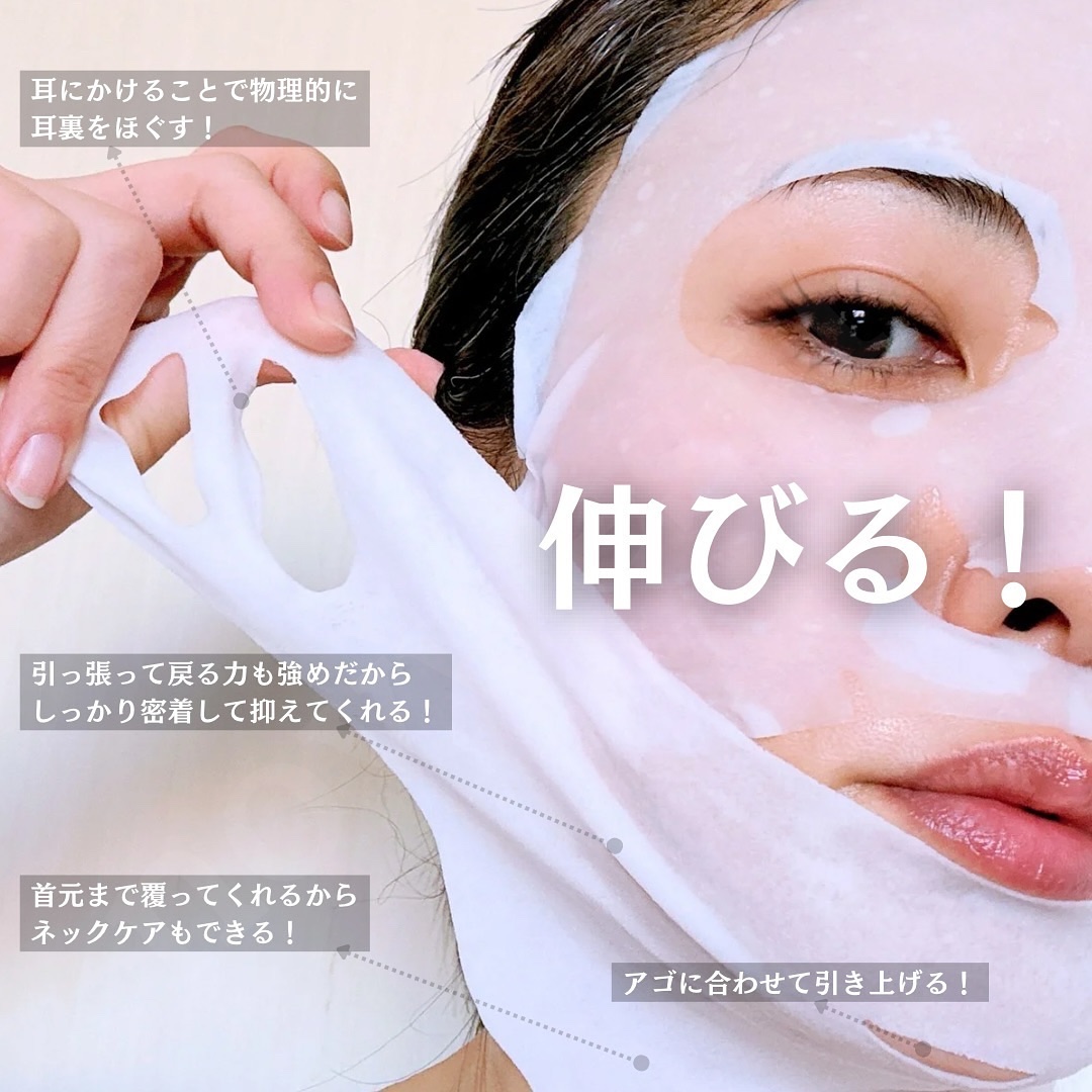 - ※2025年7月以降、商品パッケージ順次リニューアル。尚、これにかかる商品の返品・交換は承っておりません。 上下セパレートタイプの立体密着、マスクでぐいっと引き上げ*1! NMN*2バイオ圧縮カプセルと糸が溶け込んだ弾性3Dシートマスク *1使用方法のこと *2ニコチンアミドモノヌクレオチド(整肌成分) (※2025年3月下旬より全国のバラエティーショップで順次発売開始予定。)