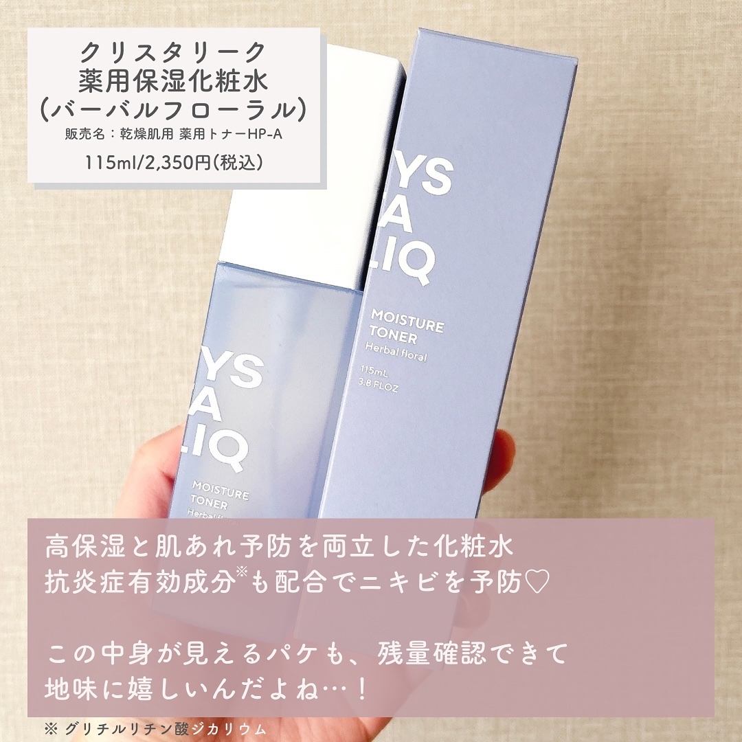 クリーミーでなめらかな泡立ちの洗顔フォーム。殺菌有効成分の「イソプロピルメチルフェノール」と、抗炎症有効成分「グリチルリチン酸ジカリウム」も配合されていて、ニキビ予防も出来るんです💗 サラッとした軽めのテクスチャで、肌なじみも良い印象な化粧水✨️こちらは保水有効成分「ヘパリン類似物質」が配合されております。抗炎症有効成分「グリチルリチン酸ジカリウム」も配合されているので、肌荒れやニキビを予防してくれる効果も期待できますよ! なめらかにみずみずしいテクスチャの乳液。トナーと同じ保水有効成分「ヘパリン類似物質」と抗炎症有効成分「グリチルリチン酸ジカリウム」を配合しているので、化粧水との合わせ使いがおすすめです🍀