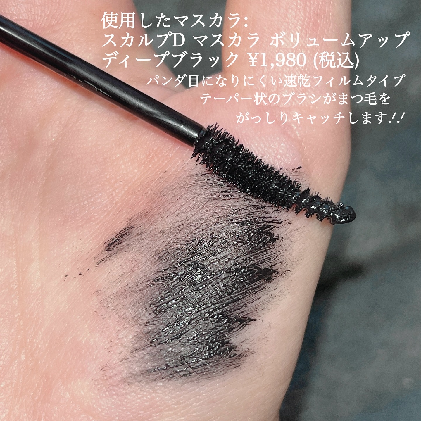 ひと塗りで主役級まつ毛が叶う✨ スカルプDまつ毛美容液にも配合されているモイストナノカプセルがまつ毛に潤いを与え毛髪補修成分がキューティクルのめくれを整えてくれるよ! マスカラつけながらまつ毛ケア出来るなんて一石二鳥だよね🫶 スカルプDボリュームアップマスカラは先端にかけて細くなっているテーパー形状で小さめブラシなので1本1本綺麗に塗れてダマにならずにセパレートしたまつ毛に仕上がるよ❣️ ウォータープルーフなのにお湯で簡単にオフ出来るのも嬉しい💕 6g 1,980円(税込)