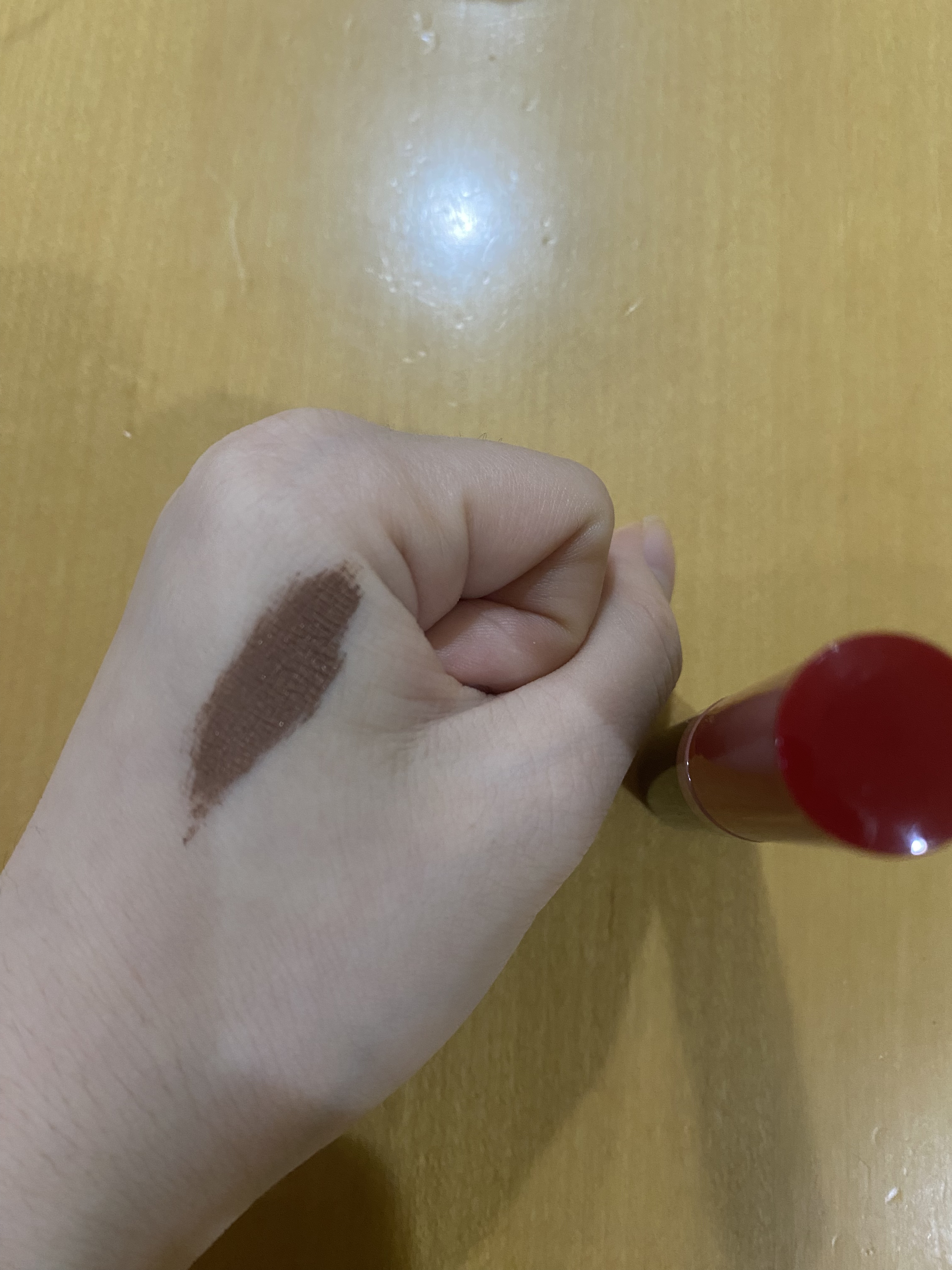 ブラシは、短めで塗りやすく肌につきにくい! 液は、緩すぎず硬すぎずでこれまた塗りやすい! 色は、顔色をパッと明るく見せてくれるようなレッド味がかったブラウン! 少し温もり感がほしいときに良い👍 他の色も気になる🫶
