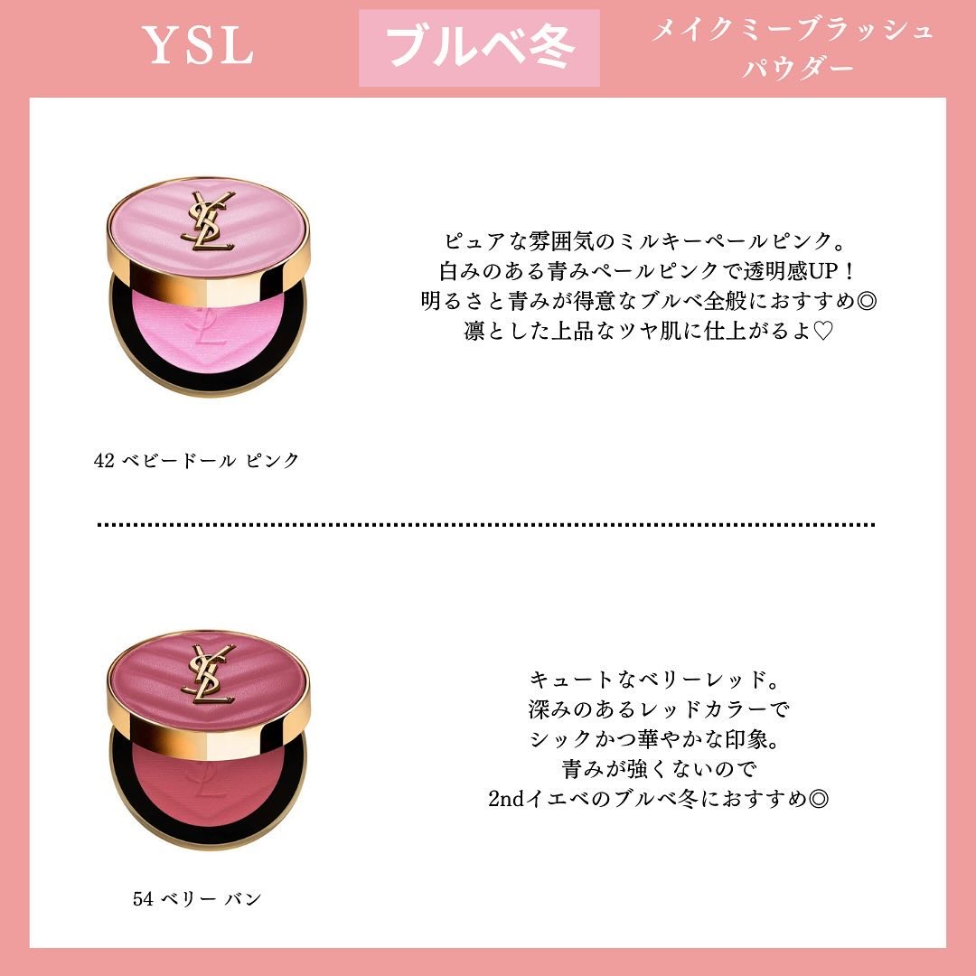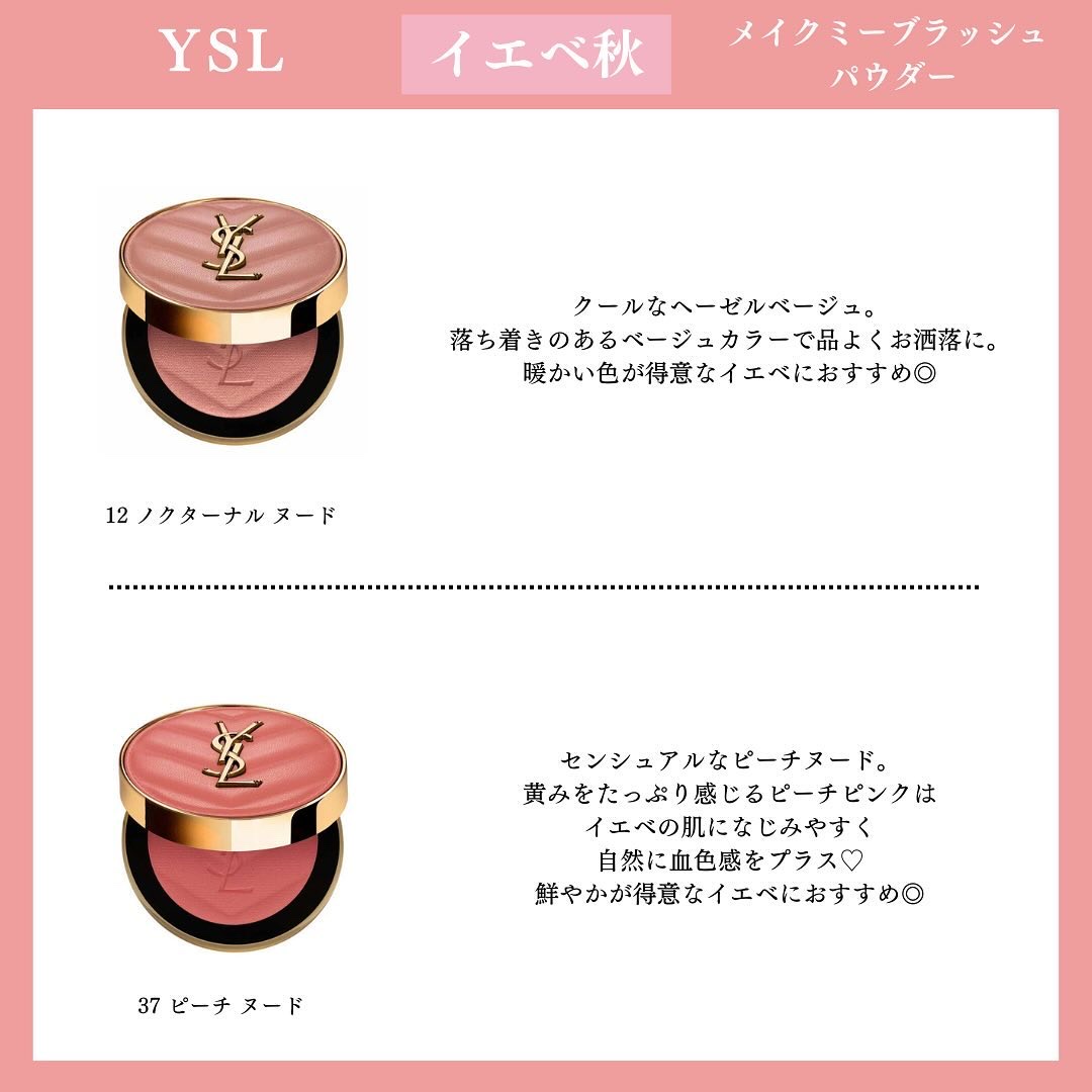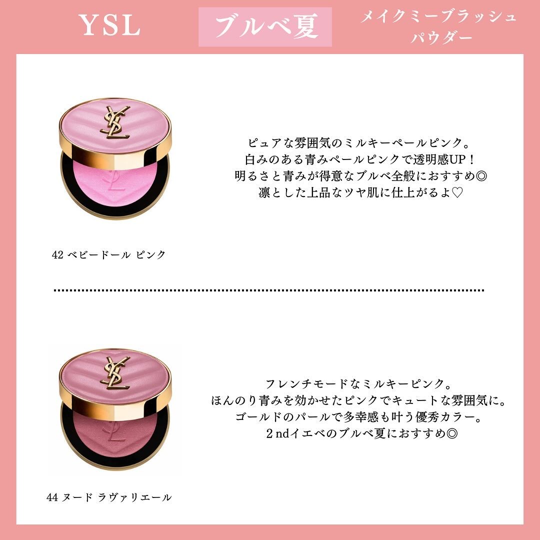 YSLの新作チーク、色もパケもあまりの可愛さに悶絶🥹 カラフルなパッケージはついつい集めたくなる! 今回頂いた44は万人受けしそうなツヤ感ローズ。全7色どれも使いやすい色味なのが素晴らしい〜👏🏻 公式オンラインでは今月25日から先行発売が始まるので、気になる方はぜひチェックしてみて!