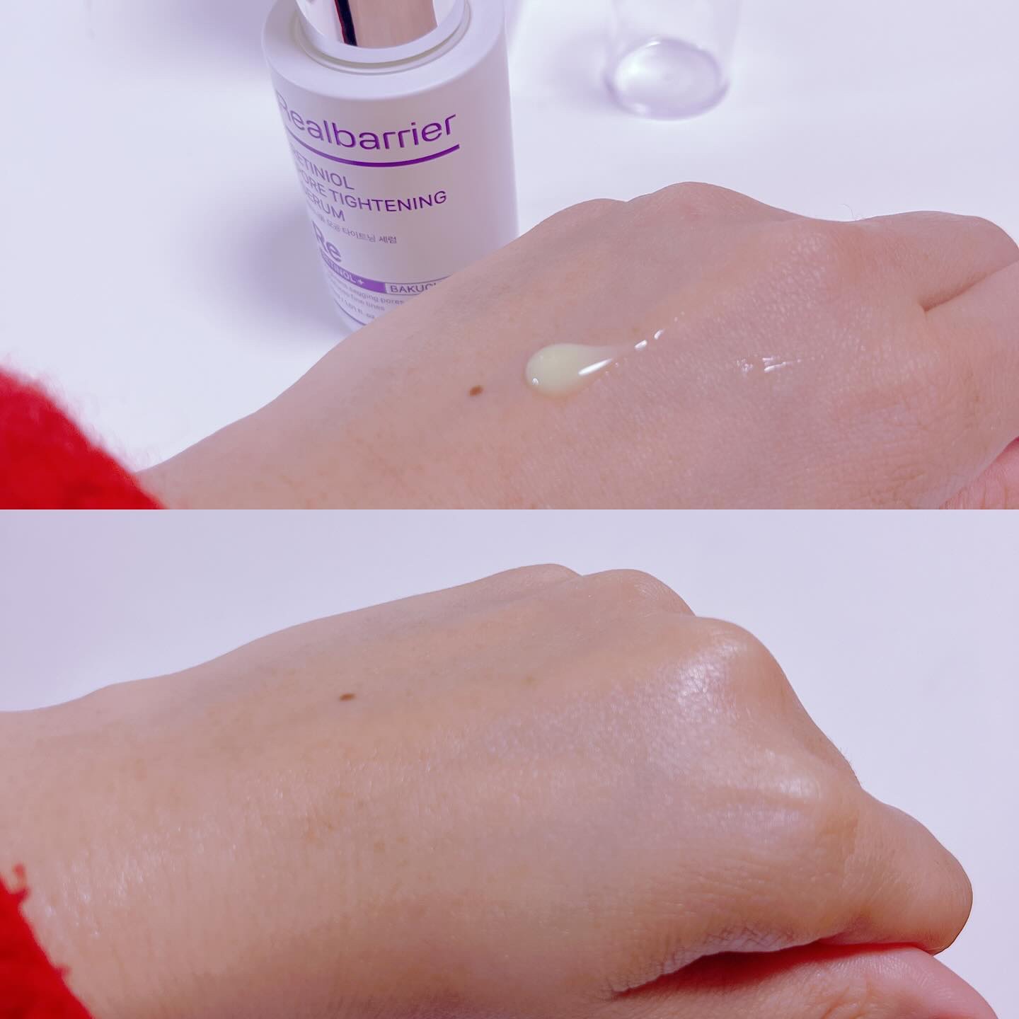 手に取ってみると、なめらかな感触で伸びがいいです。乗せた時密着感があります。 テクスチャは軽く肌馴染みが良く、軽くトーンアップしてくれます。 薄いオレンジ色ぽい感じで、薄い色のシミを少し隠してくれる感じです。 他のファンデーションと重ねてもモロモロがでるとかムラになるとかもなかったので使いやすいです。 手に取ると淡いベージュ色だけど、肌に乗せてみると白っぽくなり、肌色補整とトーンアップ効果があります。 日焼け止め効果もしっかりあるのでひとつあると便利かも。