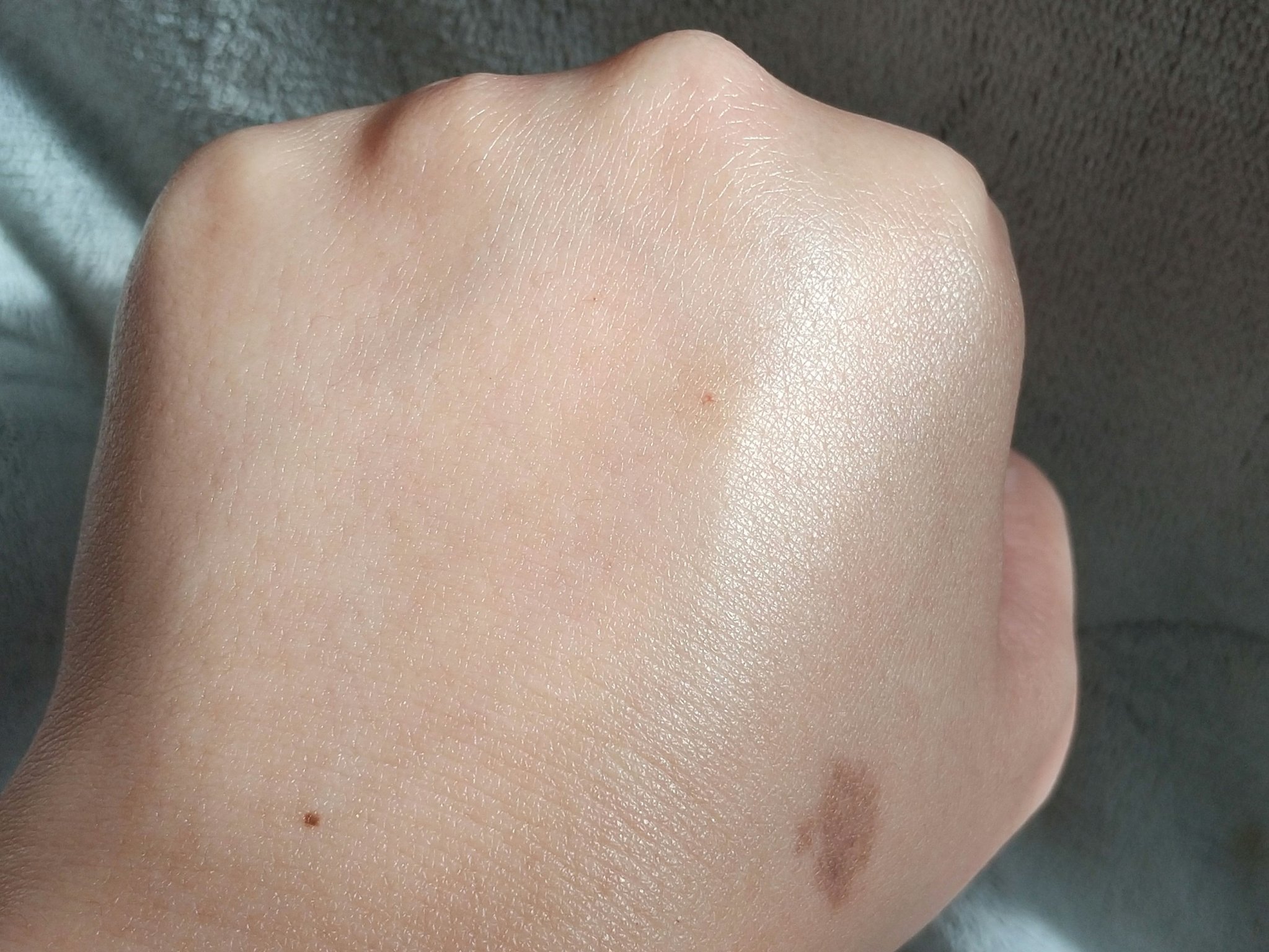 左上、左下、真ん中上、真ん中下、右上、右下という順番でスウォッチしてみました。 出してみると商品の写真より肌にのせたほうがくすみが出るかな✨という印象です😌 伸ばしやすくて指でも筆でもつけやすいです☺️💕 とっても可愛いカラーなのでオススメです💠