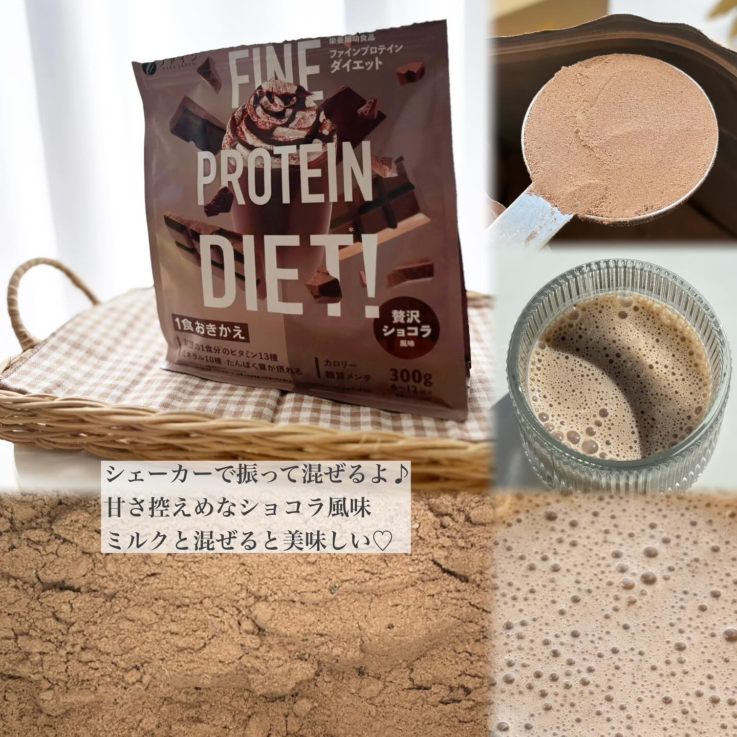 ダイエット時に不足しがちな栄養素を補ってくれ身体の内側からキレイをサポートしてくれるそう 女性の1食分のビタミン13種 ミネラル10種が配合され心強い味方になってくれそう ダマになりにくく、サッと溶けやすい!お水と一緒にのんでも贅沢感のあるショコラテイストがとても美味しいです