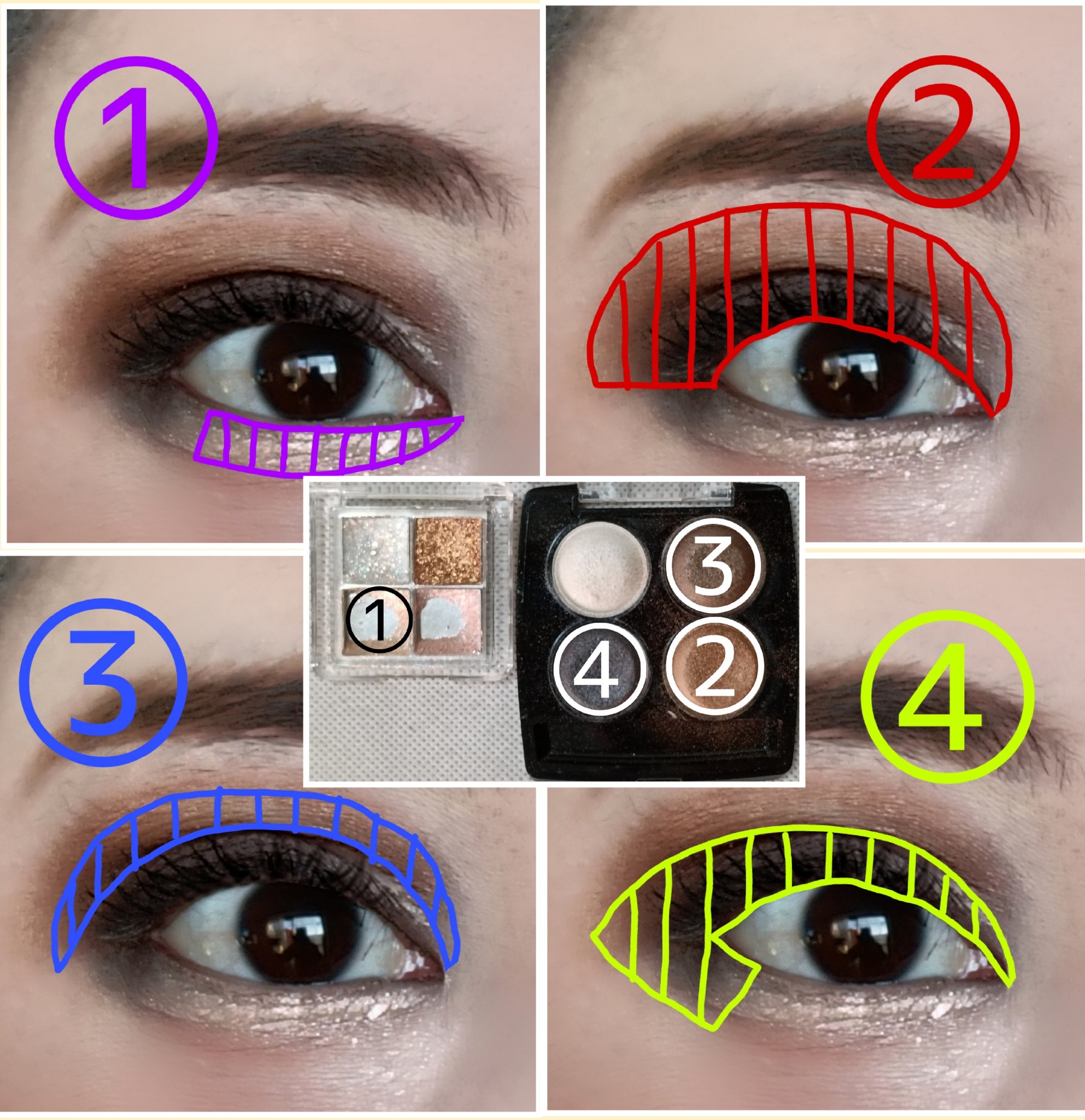 アイシャドウパレットは、URGLAM UR GLAMBLOOMING EYE COLOR PALETTE 02を、使用しました。 マスカラは、MAYBELLINE NEW YORK コロッサルボリュームエクスプレスを、まつ毛全体にまんべんなく塗ります。 リップは、wet 'n' wild MegaLast Lip Colorを、唇全体にまんべんなく塗ります。