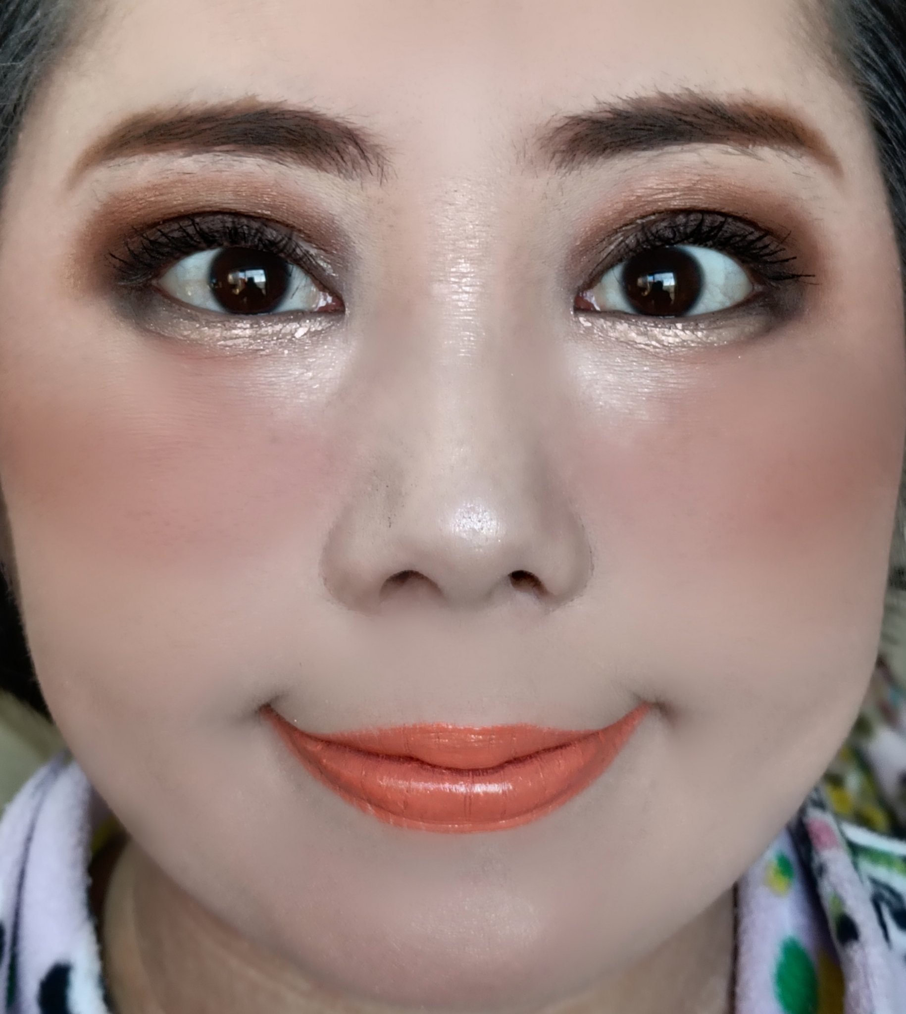 アリィー ニュアンスチェンジUV ジェル RSを、顔全体にまんべんなく塗ります。 RMK RMK ジェルクリーミィファンデーション 103を、顔全体にまんべんなく塗ります。 ジョンソンベビー ジョンソン ベビーパウダーを、顔全体にまんべんなく軽くはたきます。 THE BODY SHOP bronze shade warm glowを、両頬に塗ります。 KATE リフレクトミラーアイズ BR-1の締め色を、眉毛全体にまんべんなく塗ります。 URGLAM UR GLAMBLOOMING EYE COLOR PALETTE 01を、使用しました。 ちふれ リキッド アイライナー 筆ペンタイプ BK30 ブラックを、塗ります。 CEZANNE エアリーカールマスカラを、まつ毛全体にまんべんなく塗ります。 MAYBELLINE NEW YORK コロッサルボリュームエクスプレスを、まつ毛全体にまんべんなく塗ります。 MAYBELLINE NEW YORK SPステイ マットインク 135を、唇全体にまんべんなく塗ります。