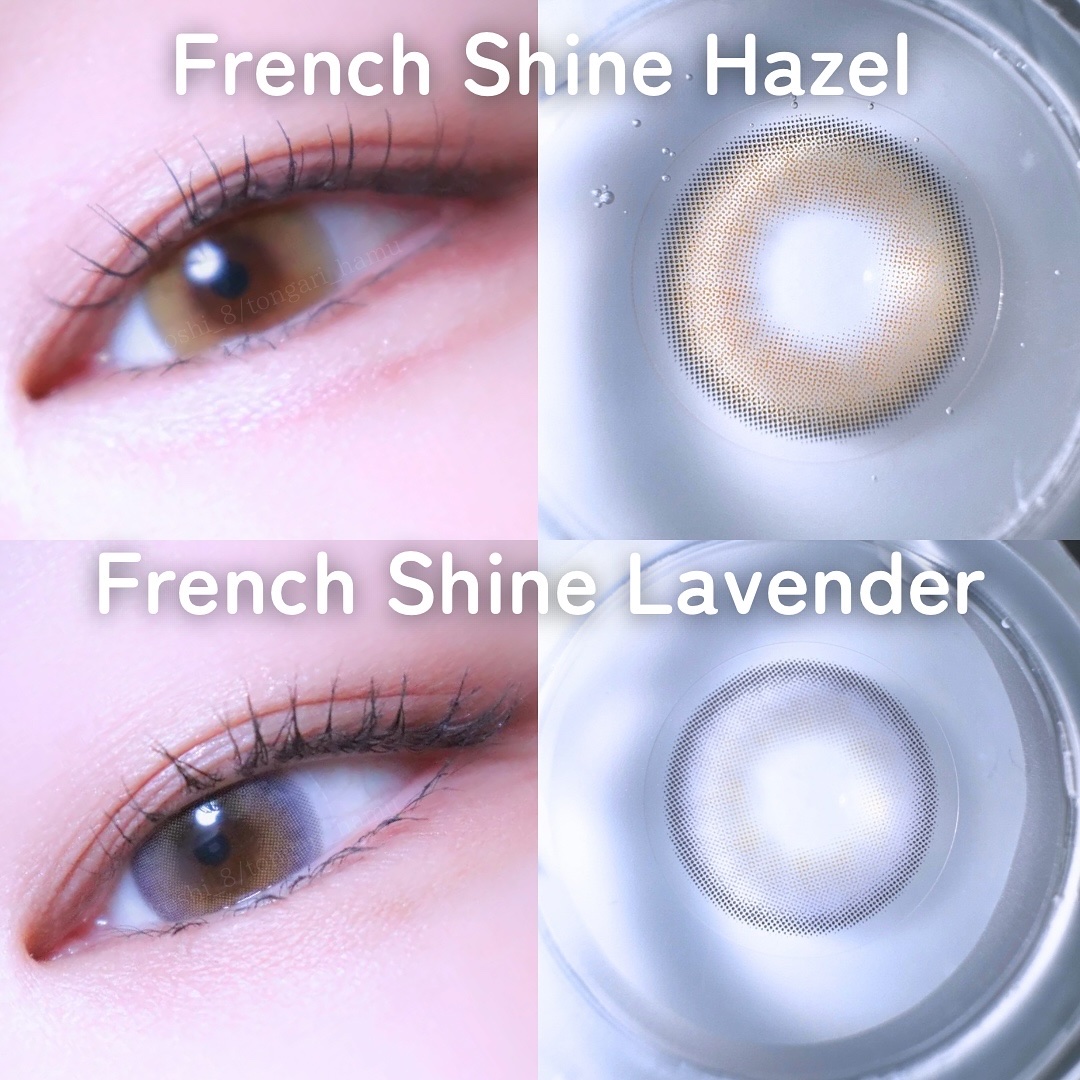 フレンチシャインは透明感ましましカラコンで発色も︎👍🏻 発色いいけどそんなに派手にならず使えるよっ🤍 ゴールドベースのレンズでグラデーションになってるから裸眼となじむ!色素が薄くなったような瞳にしてくれるよ✨ 一気に儚い瞳になれるラベンダーカラー。 これめちゃくちゃお気に入りです◎