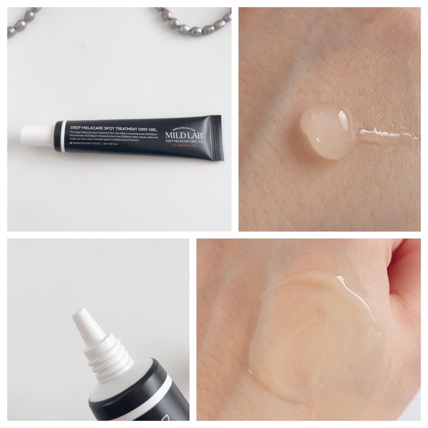 色素沈着ケアができる『ディープメラケアアンプル+スポットトリートメントオイントゲル』ナイアシンアミドやトラネキサム酸が含まれていて色素沈着ケアと美白ケアができるよ♪ テクスチャーはどちらも伸びが良くてしっとりするのにベタつかなくて使いやすいの✨ ニキビ跡が永遠の悩みだから使い続けて少しでも改善すると嬉しいな🥹