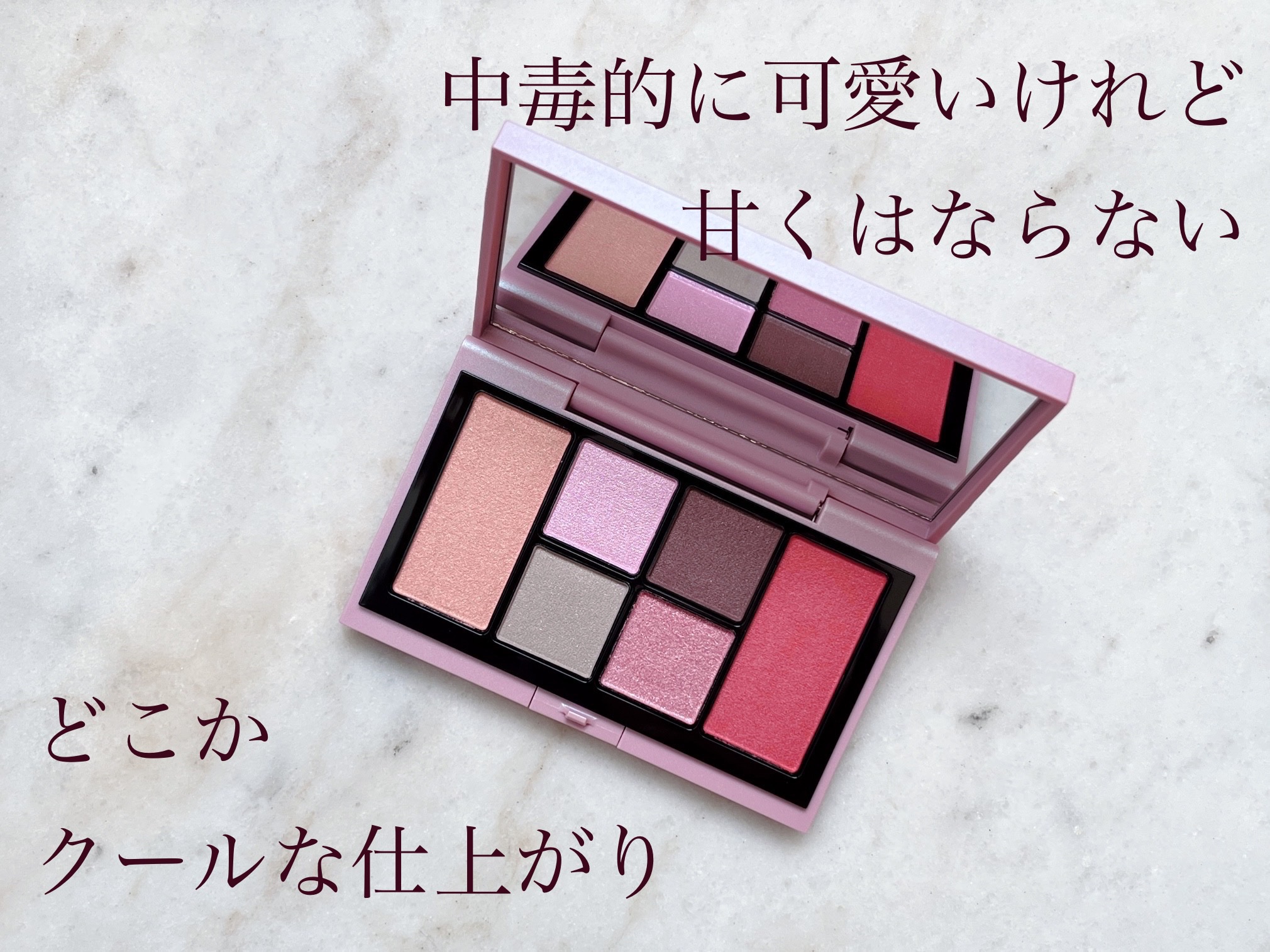 - 〈限定販売〉 ホリデーの高揚感とモダンなムードの両方がひと塗りでかなう、可愛げとクールネス、ひとさじの毒っ気がまばゆくスパークする特別なパレット。 こだわったのは、ピンクバイオレットとパープルの絶妙な色設計。 クールトーンでありながらまぶたとひとつになる、肌なじみのいいカラーバランスを追求。 深みを醸すグレー、ダークプラムの締め色と組み合わせれば、アップデイティッドなピンクアイズが完成します。 チークはあえてアイシャドウとコントラストを描くシアーなレッドをセット。 ハイライトを重ねることで表情をドラマティックに盛り上げ、この季節にふさわしい華やかさをもたらします。 可愛いけれど甘くない。そのギャップが心を奪う、‘‘ 可愛い’'の新しいアティテュ ードがここに。 予約日:2024年10月18日(金)~ 発売日:2024年11月1日(金)~