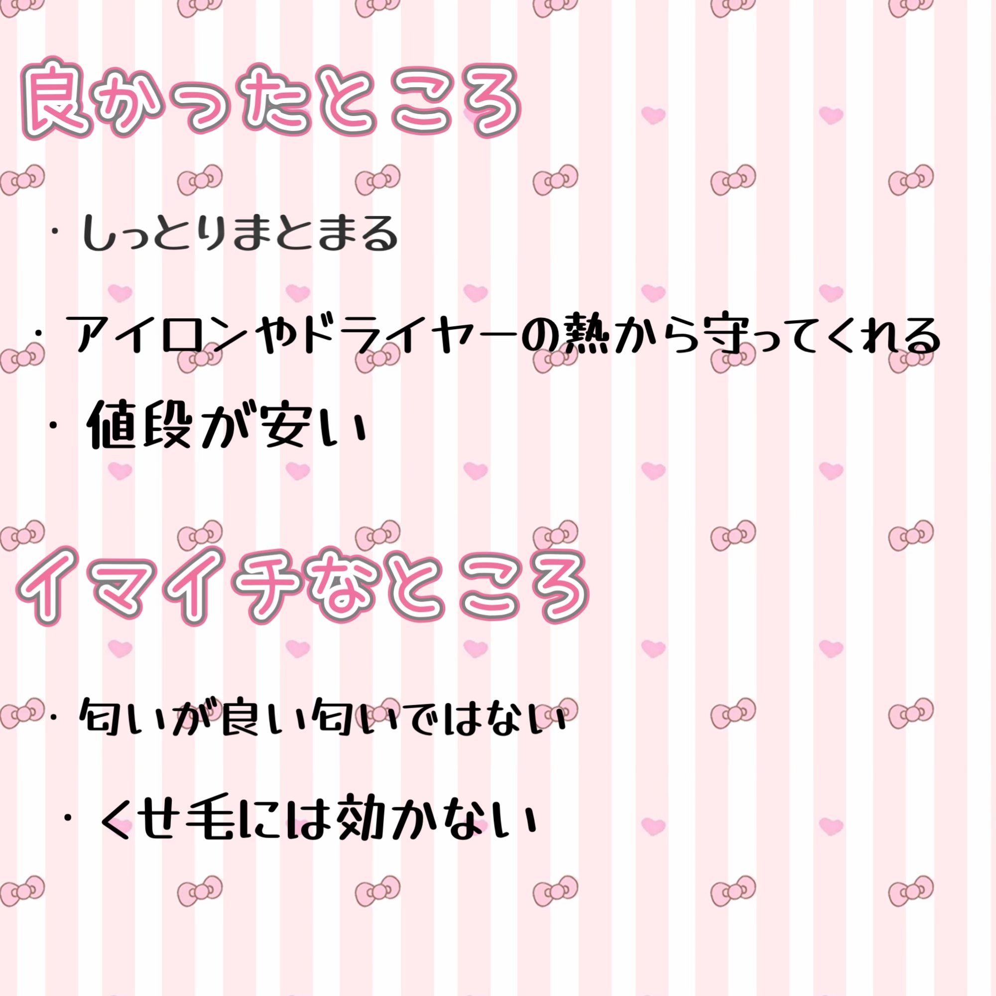 | ヘアケア・スタイリングランキング第21位 | テクスチャーはとろみがあるけどそんなに重くなく、つけた後もベタつくことなく髪の毛がしっとりとまとまってサラサラになります⟡.· | 詳細を見る | |