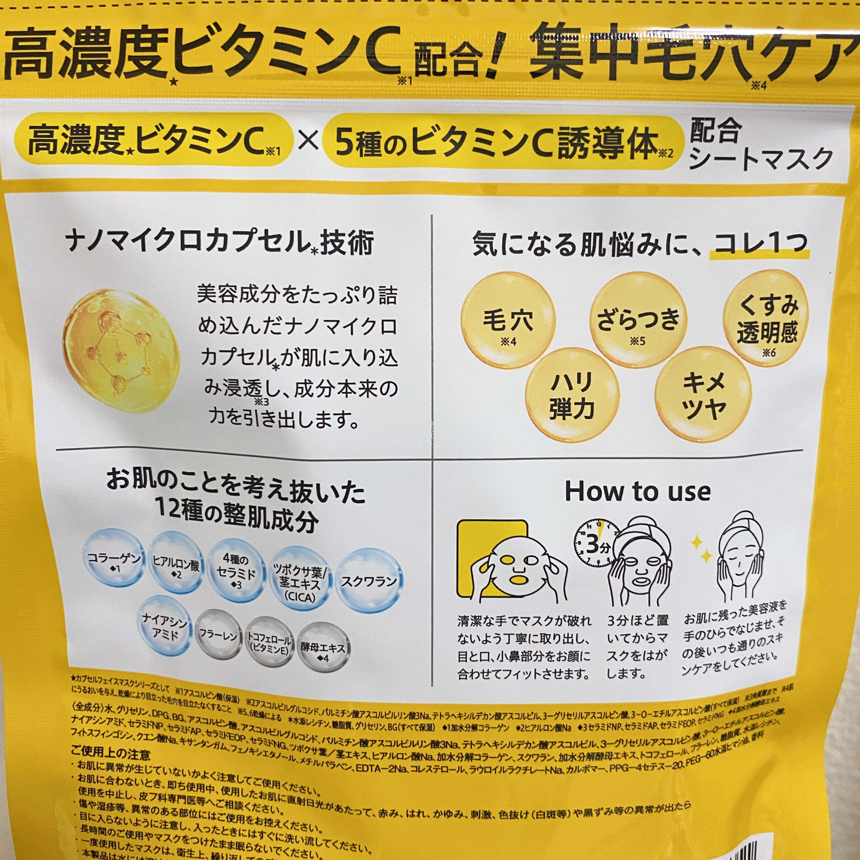 カプセルセラムから新しく発売された、CPフェイスマスクは、美容液たっぷりのシートで肌を優しく包み込み、乾燥やくすみが気になる肌に潤いをチャージしてくれる心強いアイテムです💛 ✔️ 高濃度美容成分配合! お肌に浸透しやすいナノマイクロカプセルに濃縮した、生ビタミンCと4種類のビタミンC誘導体を配合。 優しくさわやかなマンダリンの香りが…🍊☘ 美容液たっぷりで、ヒタヒタのシートが7枚入りです。