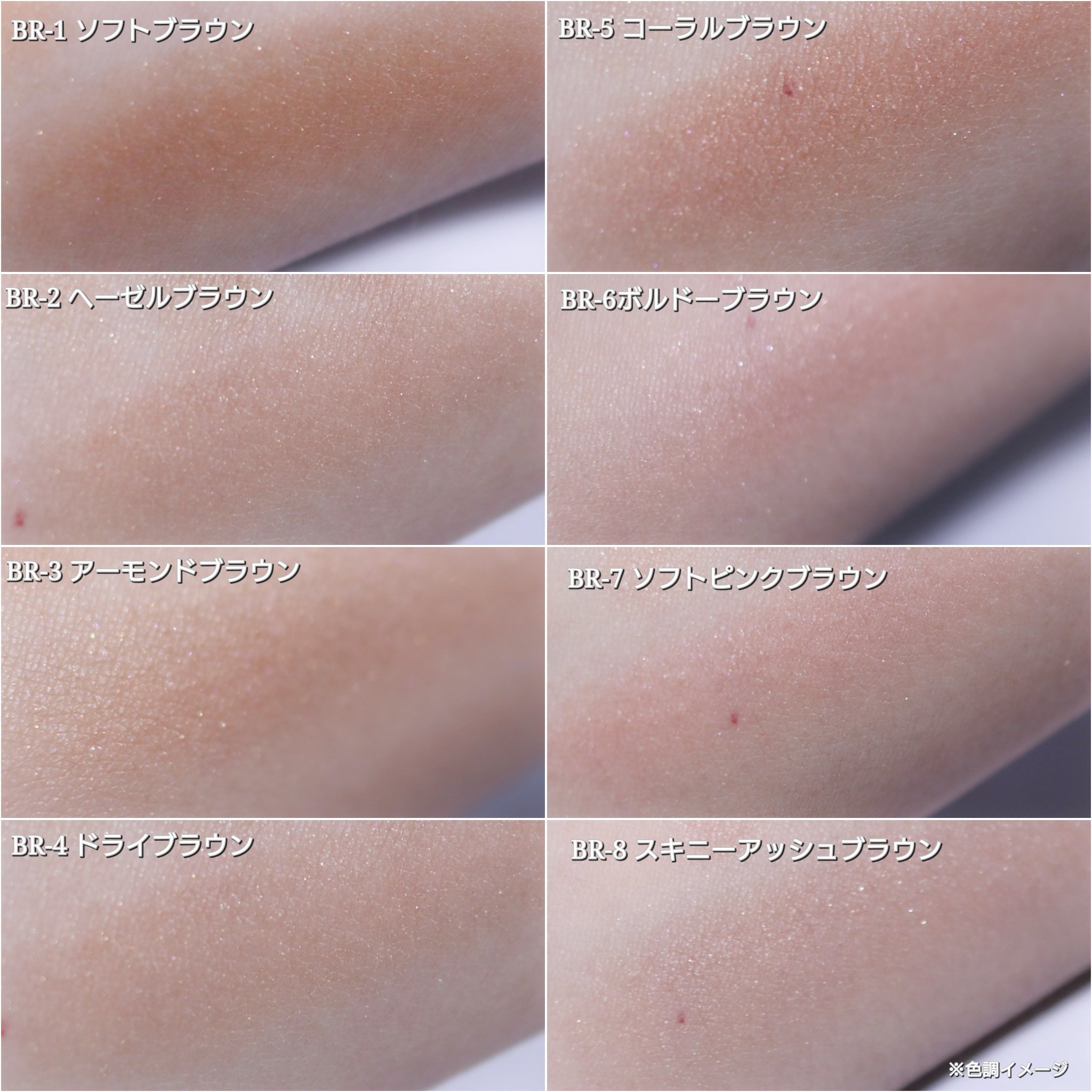 透け感×繊細パールで立体感を演出できるアイシャドウ!8色展開で自分に合うブラウンがきっと見つかる💡 粉質もしっとりしていて密着感が良かったです! 極細の筆先で描きやすいし、にじみにくい処方だから、長時間きれいなラインをキープできます🫧