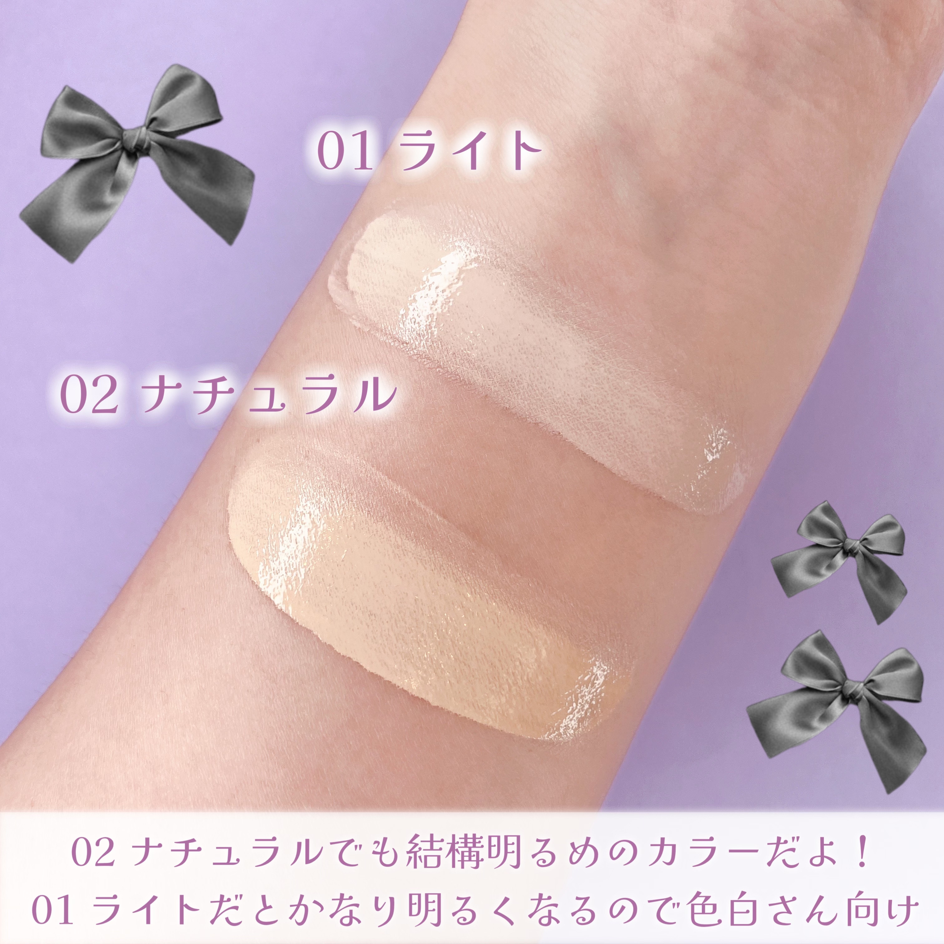 まるで美容液♡みずみずしく輝き上品な艶肌に仕上げる下地✨ しっとりなめらかなお肌に整え、パールによる艶めきをプラス!肌の内側からうるおいが溢れ出るような明るい艶肌に🔆 パールの効果で毛穴・くすみなどの肌悩みを光で飛ばすように自然にカバー!明るくフラットなお肌に見せてくれるよ🫶 白浮きせずに艶と透明感を仕込めるラベンダーカラー💜発光したような澄んだ肌印象に👱🏻♀️💘