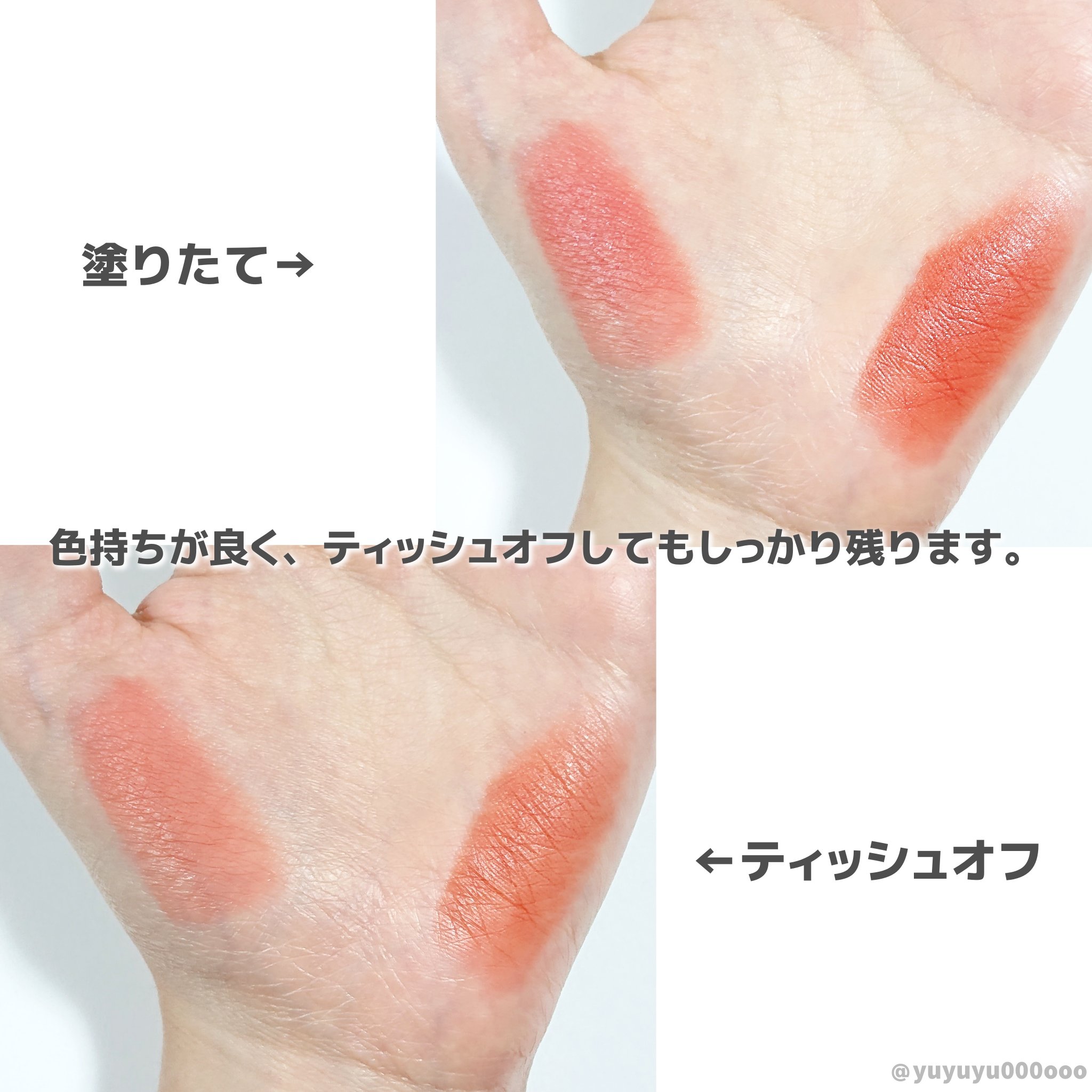 | 口紅・グロス・リップライナーランキング第45位 | めちゃくちゃ塗り心地が軽いのに、色のせてすぐティッシュOFFしても色がめっちゃ残る!! | 詳細を見る |
