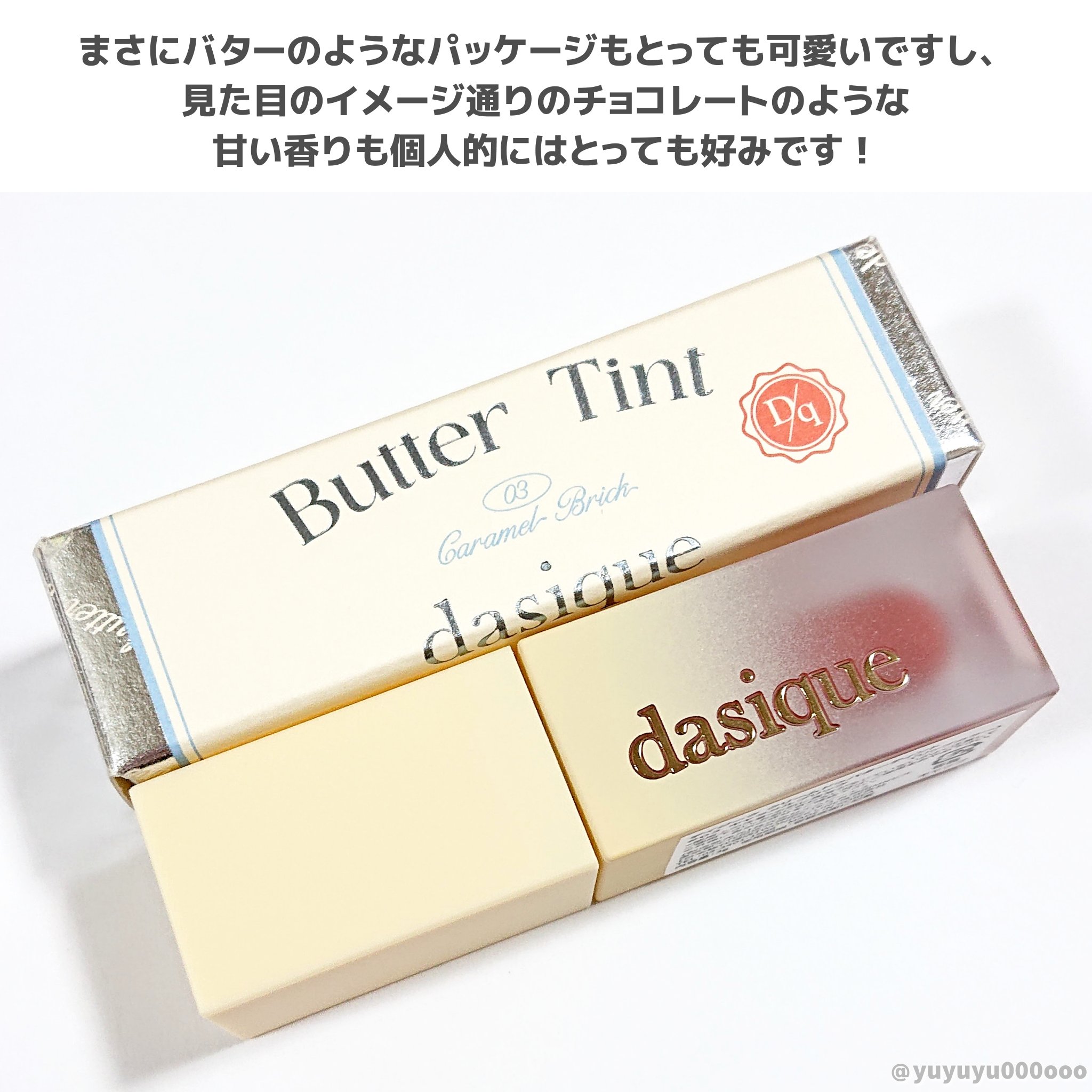 - バタークリームテクスチャーがとろけるほど薄く超密着するクリームドゥバターティント #バタークリームティント #スクチャク密着 #バターブリング ・バターの香ばしい色味と塗った瞬間唇にとろける柔らかいテクスチャー ・唇の角質や乾燥のケアとナチュラルマットフィニッシュでサラッとしたグラデーションブラリップを演出 ・一度塗るだけで唇に軽くて薄くフィットし、本来のカラーを長持ちさせます。