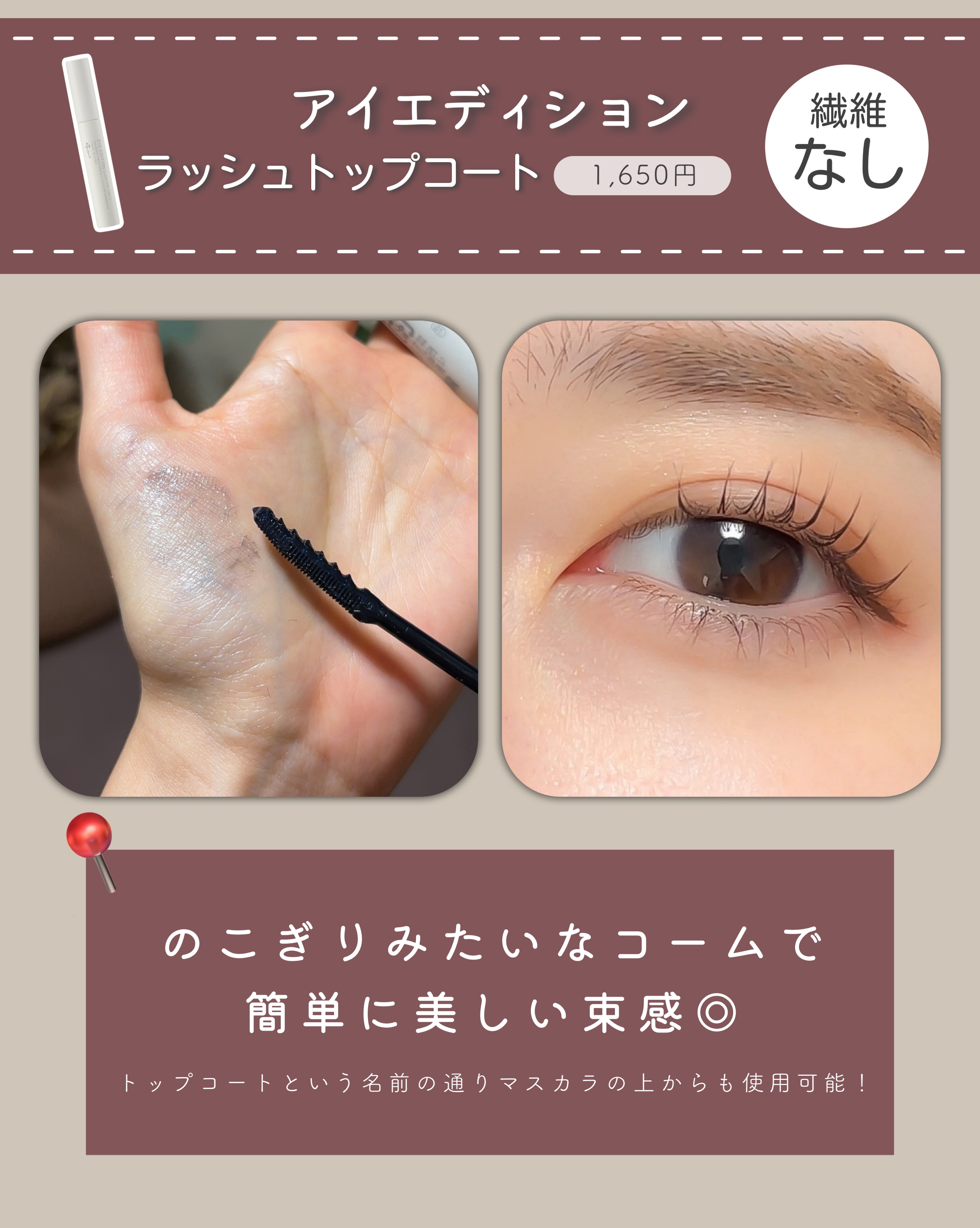 | クリアタイプだから どの色のマスカラとも合わせやすいの!ブラシも細めで適度なコシがあって まつ毛を整えながら塗りやすいよ😊 | 詳細を見る | ||