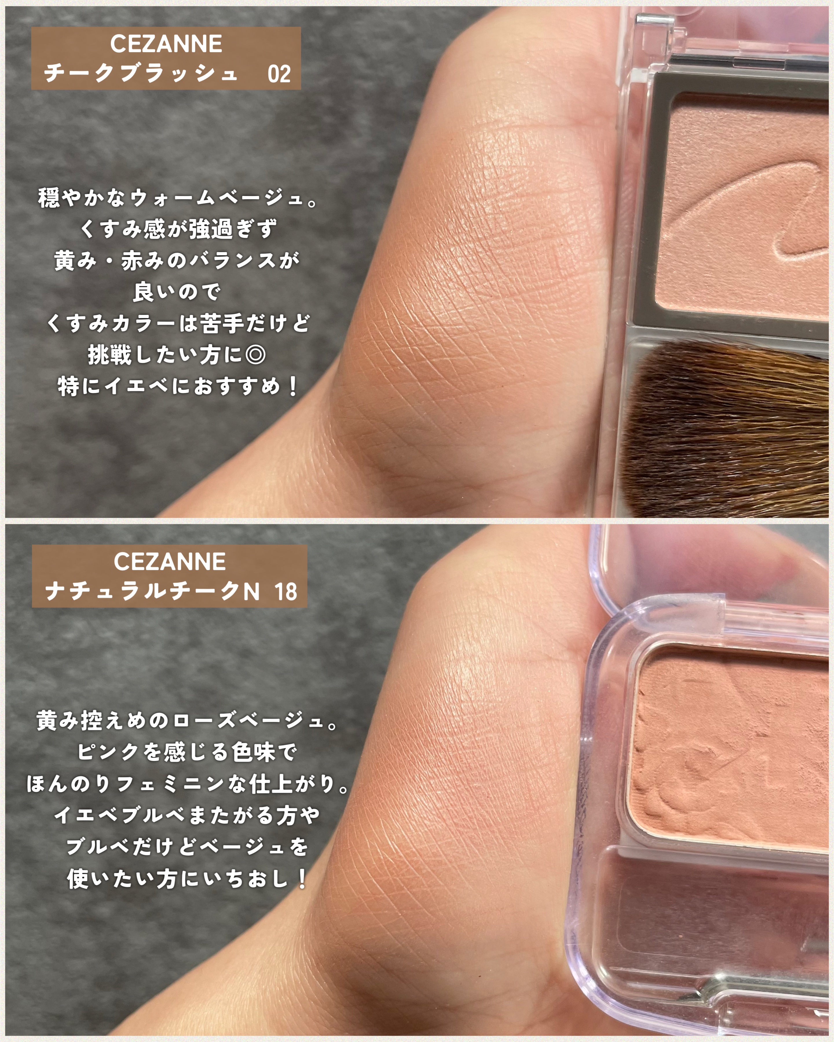粉質がすごく良くなって、しっとり感とツヤ感が強くなりました! 04が個人的大ヒットで🥹💯 他のチークと混ぜて使うと、ツヤっぽくほわーっとした色付きになって最高! チーク要らない派の方に是非試してみて欲しいカラーです🫶🏻