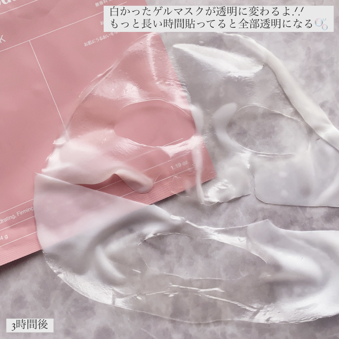 34gの美容液を丸ごと固めて作られたパック💗 超低分子コラーゲンエキス(保湿成分)と加水分解ヒアルロン酸(保湿成分)が肌にしっかりと保湿感を与え、ぷりんとツヤのある肌に整える。 ぷるぷるとしたゲルマスクはひんやりして使用している間も気持ち良い! 貼ったまま寝られるのも嬉しい(#^.^#) しっとりとした保湿感あり、ツヤ肌に。 乾燥肌さんに特に良いと思いました☺️