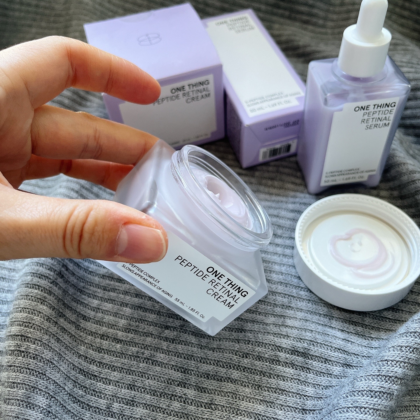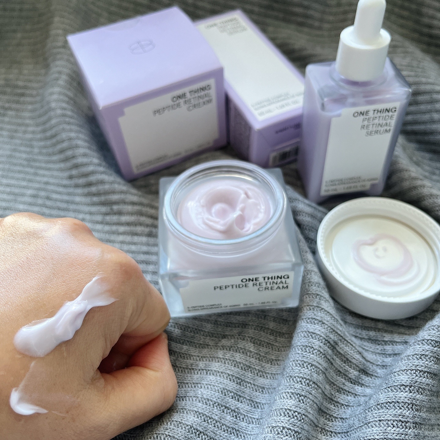 敏感肌でも使える紫のスキンケア商品💜💜 お肌のハリや弾力感をサポートしてくれるペプチド✖️レチナールが配合されています! セラムはネバネバな糸引くテクスチャーで軽く叩きながら馴染ませます💆🏻♀️ クリームはこってりとしていますが少量でも伸びもよく、すぐにお肌に馴染んでくれます✨ セラムとクリームのW使いで翌日の朝までしっかり保湿されてしっとり肌に🧴✨ そのおかげで化粧ノリも良くなりました💜