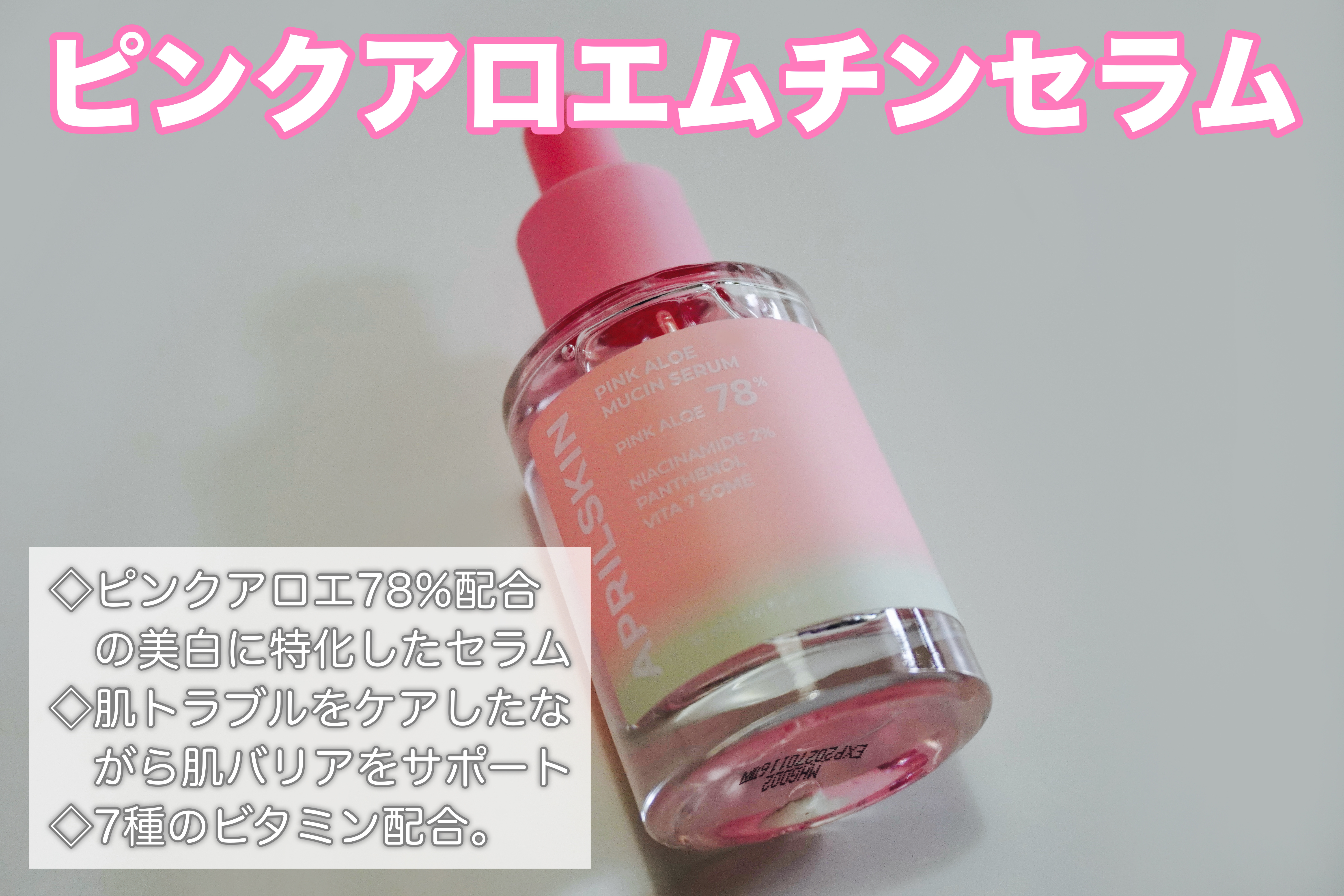 #エイプリルスキンのピンクアロエシリーズ使ってる⁉️🩷ピンクアロエビタトナー🩷ピンクアロエムチンセラム一般のアロエより198%も効果が高いピンクアロエが配合されてるの😳❣さっぱりなトナーと潤うセラムで使いやすくてオススメ💭👀✨#PR#韓国コス...