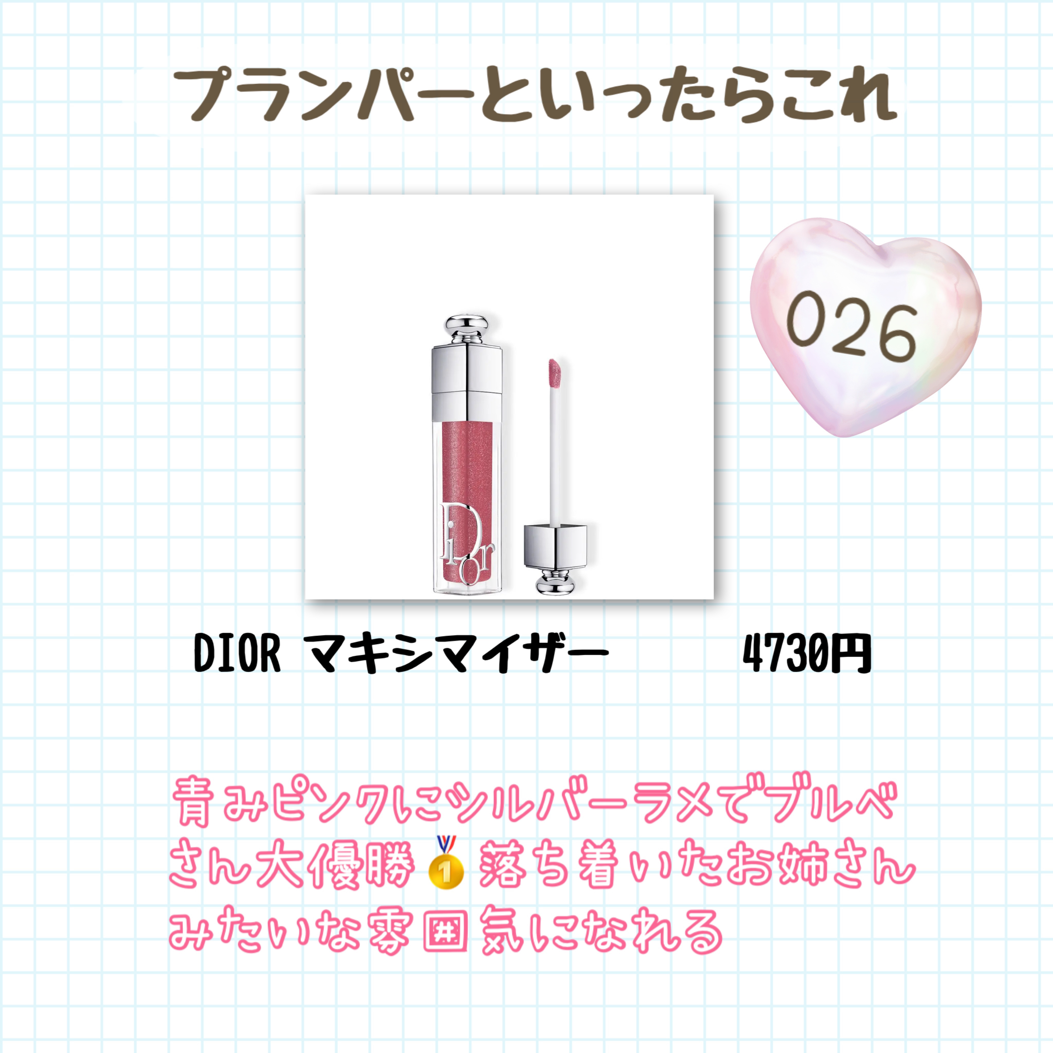 | 口紅・グロス・リップライナーランキング第5位 | ぎっしりラメだけど大粒ではなく、流石デパコスの繊細なチラチラ感なので単色塗りでも、重ねて塗っても上品な仕上がりでとても可愛いプランパーとなっています | 詳細を見る | |