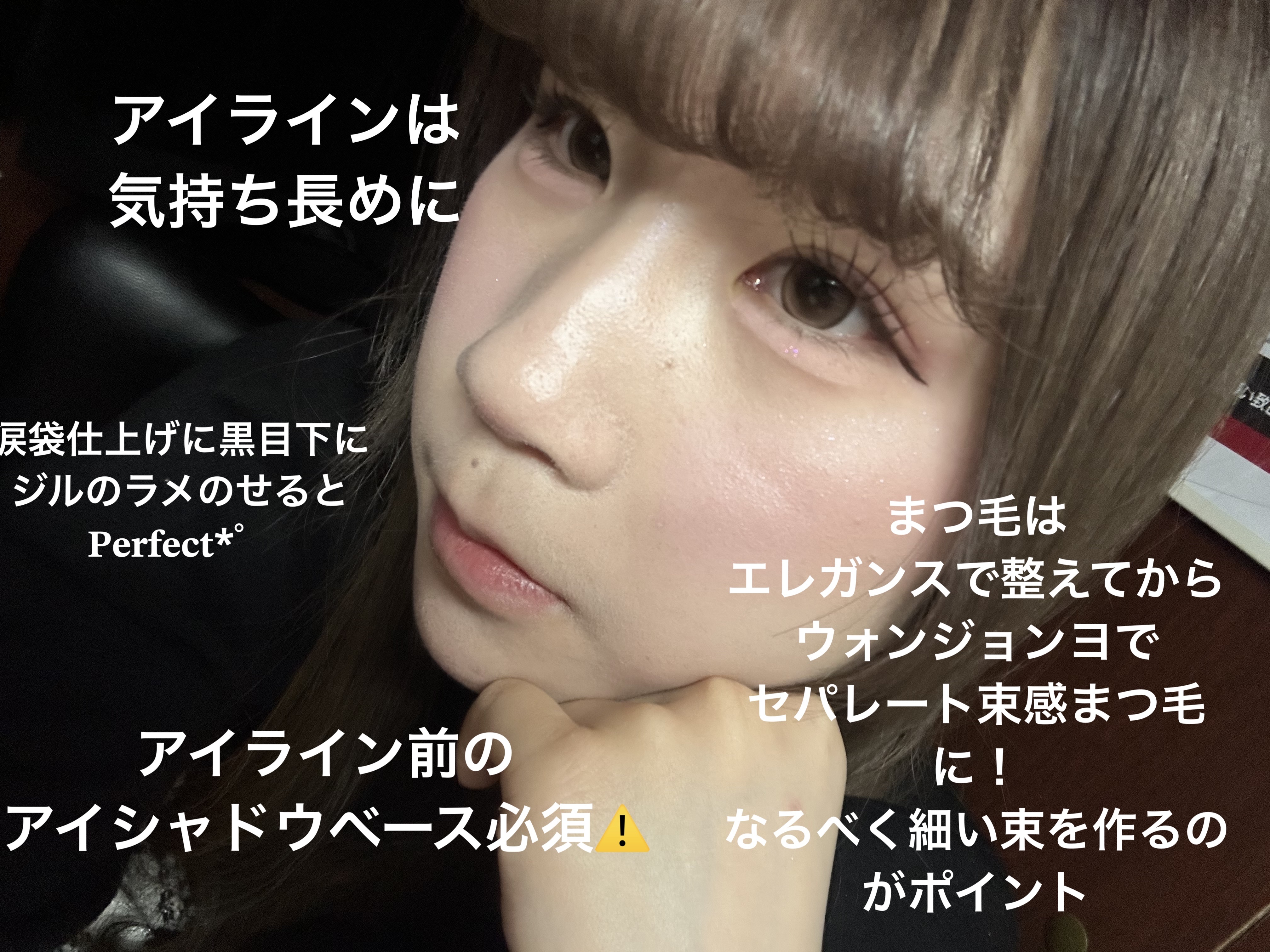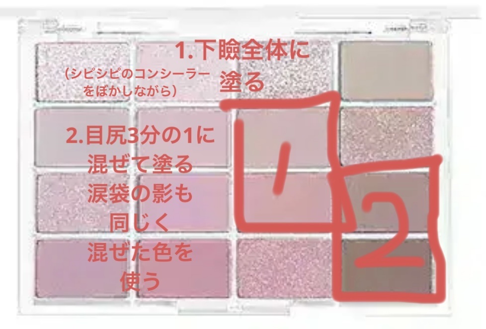 WAKEMAKEの04番のラベンダーカラーを中心にキラキラめいく♡♡♡ 3番は上まぶたの中央にぬる!ジルのグリッター01番を涙袋の中心だけ塗る!(うるうる感でてかわいい) カラコン エバーカラーワンデー パールスノーグレー リップ ペリペラ インク ムード グロイ ティント04