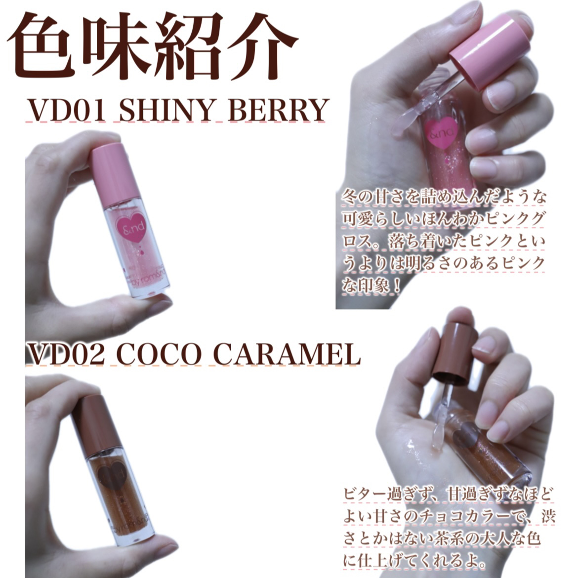 本日発売/数量限定の&nd by rom&nd グラッシーボムティントのVD01Milky cocoaとVD02Choco bombをゲットしました!✊ 若干VD02Choco bombの方が売れていた印象だけど、どっちのカラーも程よく超ドンピシャカラー! 詳しいレビューは夜アップします〜!☺️