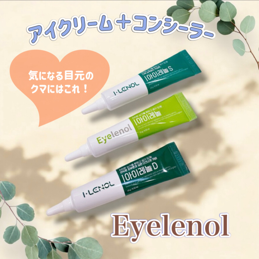 - <アイレノール クマクリーム> 水、シクロペンタシロキサン、グリセリン、ナイアシンアミド、ツボクサ葉エキス、サンゴエキス、パンテノール、イソヘキサデカン、ヒドロキシエチルウレア、ジメチコノール、アラントイン、グリチルリチン酸2K、プロパンジオール、カプリルヒドロキサム酸、香料、オリーブ果実油、酢酸トコフェロール、ホホバ種子油、オレイン酸ソルビタン、アルガニアスピノサ核油、アデノシン、エチルヘキシルグリセリン、プルラン、ヒアルロン酸Na、EDTA-2Na、トリデセス-6、DNA-Na、(アクリル酸グリセリル/アクリル酸)コポリマー、リノール酸グリセリル、ペンチレングリコール、リノレン酸グリセリル、アラキドン酸グリセリル、パルミチン酸レチノール、ラウリン酸K、ピーナッツ油、ヒアルロン酸クロスポリマーNa、トマト果実エキス、ブロッコリーエキス、ケール葉エキス、キャベツ葉エキス、チャ葉エキス、レモン果実エキス、アスパラガスエキス、フラガリアチロエンシス果実エキス、カキ葉エキス、トウガラシ果実エキス、水溶性プロテオグリカン、アスタキサンチン、ヒアルロン酸、トコフェロール、パルミチン酸アスコルビル、酸化チタン、酸化鉄、他 <アイレノール クマクリームS> 水、シクロペンタシロキサン、グリセリン、ナイアシンアミド、ツボクサ葉エキス、サンゴエキス、パンテノール、イソヘキサデカン、ヒドロキシエチルウレア、ジメチコノール、アラントイン、グリチルリチン酸2K、プロパンジオール、カプリルヒドロキサム酸、香料、オリーブ果実油、酢酸トコフェロール、ホホバ種子油、オレイン酸ソルビタン、アルガニアスピノサ核油、アデノシン、エチルヘキシルグリセリン、プルラン、ヒアルロン酸Na、EDTA-2Na、トリデセス-6、DNA-Na、(アクリル酸グリセリル/アクリル酸)コポリマー、リノール酸グリセリル、ペンチレングリコール、リノレン酸グリセリル、アラキドン酸グリセリル、パルミチン酸レチノール、ラウリン酸K、ピーナッツ油、ヒアルロン酸クロスポリマーNa、トマト果実エキス、ブロッコリーエキス、ケール葉エキス、キャベツ葉エキス、チャ葉エキス、レモン果実エキス、アスパラガスエキス、フラガリアチロエンシス果実エキス、カキ葉エキス、トウガラシ果実エキス、水溶性プロテオグリカン、アスタキサンチン、ヒアルロン酸、トコフェロール、パルミチン酸アスコルビル、酸化チタン、酸化鉄、他