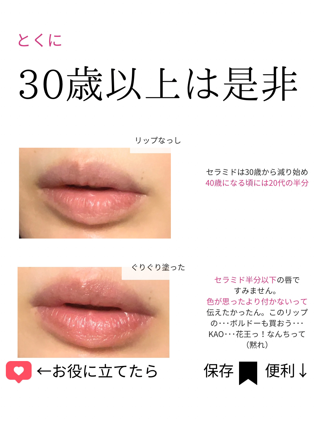 パールによる光の反射で立体感があって、発色もよく明るい唇に◡̈︎ 派手過ぎず、程よい血色感が出る^^ しっかり乾燥ケアもできるので、常に鞄に入れておきたいリップケアクリーム! 他のカラーも試してみたいと思いました❤︎ 潤いをしっかり閉じ込めてくれるので、寝ている間も乾燥、荒れ、ひび割れなどから守ってくれる。