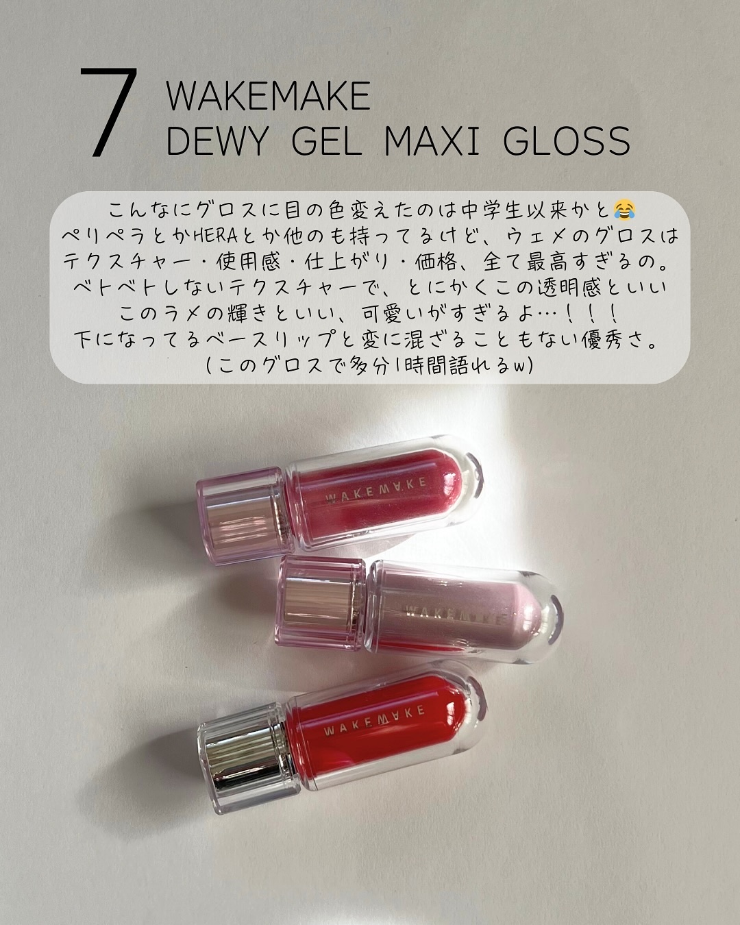 一個持ってれば、リップはもちろんチークにも、 アイメイクにも使えて超便利!! しかも見た目も可愛いし、使用感や機能性も抜群だよ!! withoutカラーの返品騒動の時に 該当の商品当たっちゃって、 ブランドに対しても結構がっかりしてたんだけど、 結局今になって考えてみると、 やっぱりめちゃくちゃ良い商品だし、 withoutめちゃんこ使いやすい😂 いまだにブランドに対しては色々と思うところはあるのだけど、 それでもオススメしたくなっちゃうほど良い商品なんデス🥲