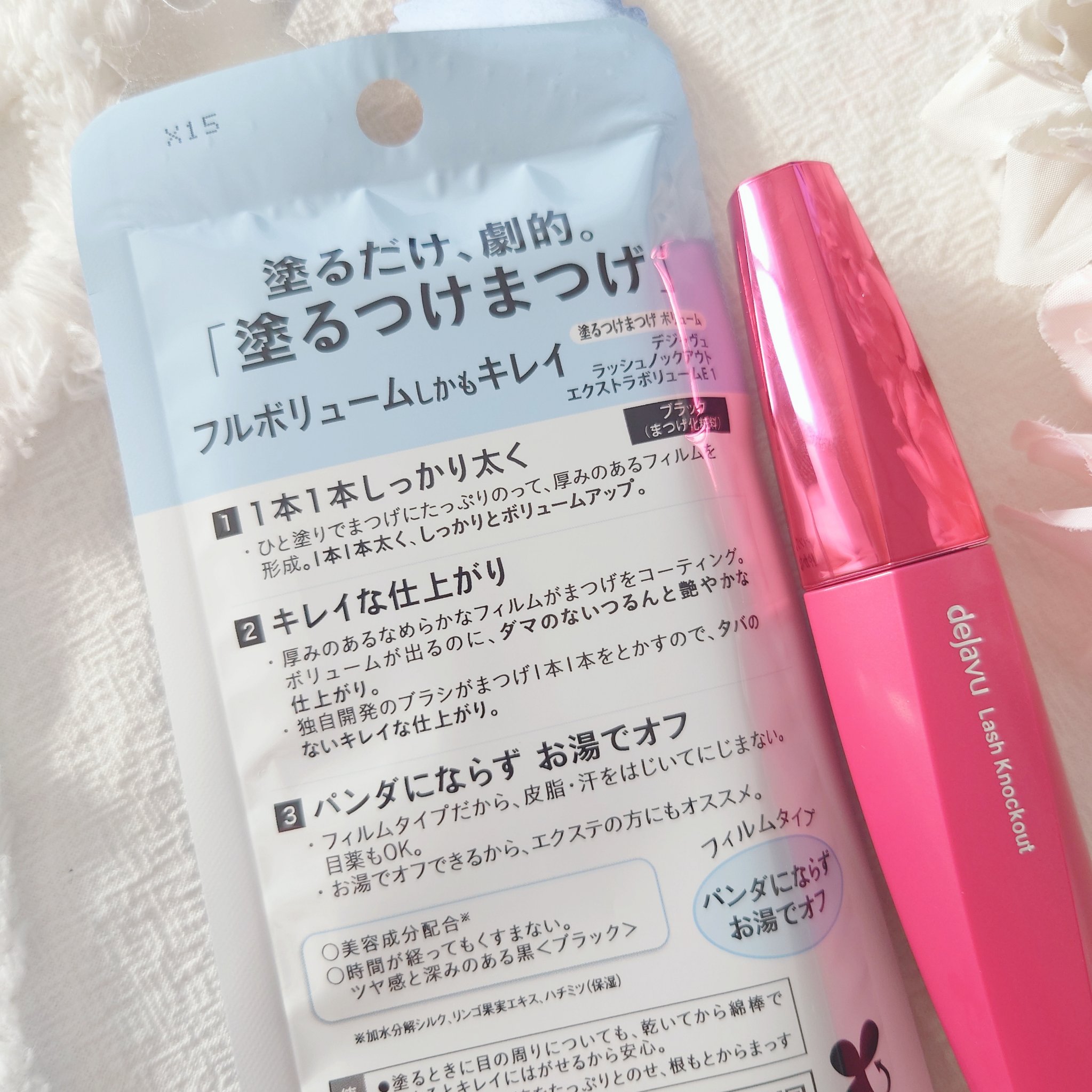 デジャヴュのマスカラは、コスパもよくドラックストアやバラエティショップなどでも手軽に手に入るのが嬉しいですよね! 目ヂカラを最大限に引き出す、「塗るつけまつげ」自まつげ際立てタイプ。 ボリュームが出るのに、ダマなくつるんと艶やかでキレイな仕上がりの「塗るつけまつげ」ボリュームタイプ。