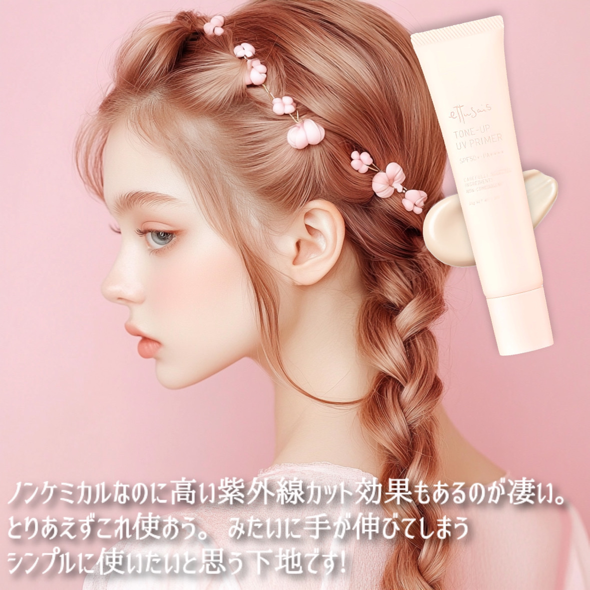 毛穴レス*&ナチュラルなトーンアップ効果でつるんとした透明感のある生ツヤ肌に仕上げる化粧下地が「エテュセ」から新登場! SPF50+ PA++++という高い紫外線カット効果なのに、ノンケミカル処方で、洗顔料でオフできちゃうんだって♡ 微細パールが光をふんわり反射して、ツヤ肌にみせてくれたよ。ギラギラしすぎないからデイリー使いにも取り入れやすい!