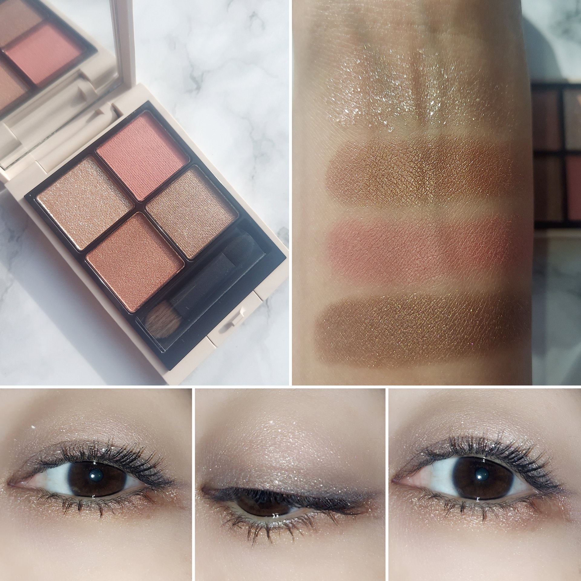 - 微差までこだわりぬいた色と質感のニューエッセンシャルパレット。 重ねるごとに深みを増し、 さまざまな質感やきらめきが混ざりあってつくり出すのは まるでワンカラーのように美しい、 やわらかくモダンなスモーキーアイ。 RMK新質感のライトシャイニーを含む、シャイニー、シマー、 パールシマー、マットのきらめきやツヤを放つ質感と色は、 それぞれが主役級でありながら4色すべてを重ねても濁らず、 奥ゆきを生みながらもダークにならない設計を追求しました。 白膜感や厚みの出にくい処方だから、 肌の色をいかしてクリアに発色。 透明感とツヤのあるパウダーが、 まぶたにやわらかくのび広がり、しっとりと肌と一体化。 肌になじみながらも主張する奥ゆきと透明感が目もとを彩り、 まとう人のパーソナリティをよりいっそう引き立てます。