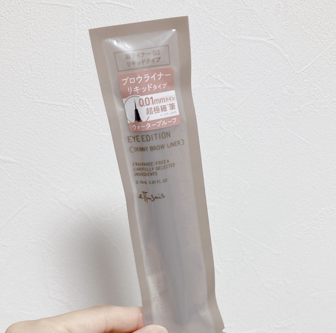 2023年ベストコスメを受賞したエテュセのスキニーブロウライナーから万能ブラウンが新登場🙌 0.01mmの超極細ラインが描けちゃう優秀リキッドアイブロウ✒️ 毛が生えてない所にも1本1本リアルに描き足せるので、自眉がまだらで眉メイク失敗しがちな私でも自然かつ綺麗に仕上がりました🥹✨ 汗・皮脂・こすれに強いウォータープルーフタイプで、落ちやすい眉尻も夕方までしっかりキープできるのも良かったです🫶
