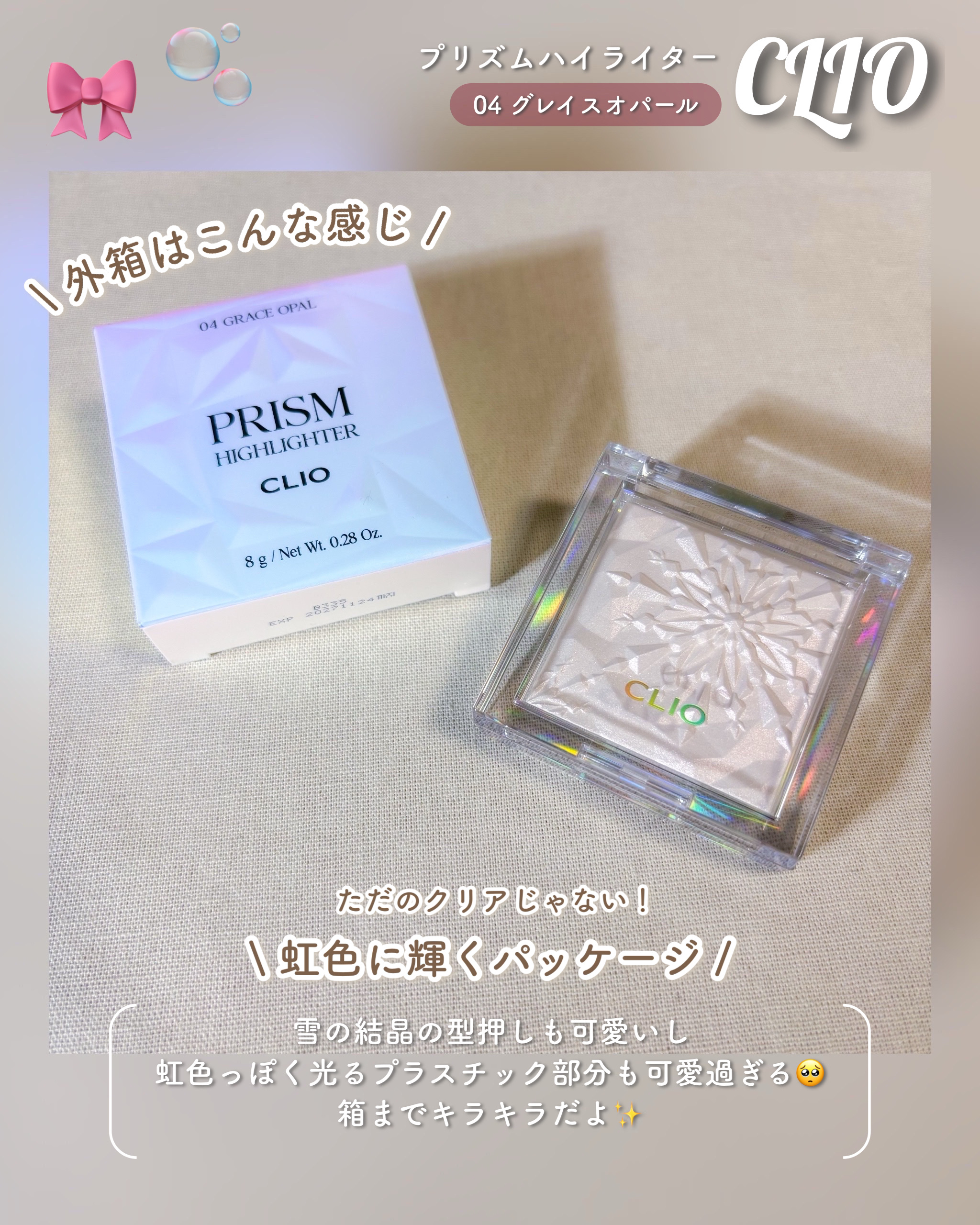 👑CLIO👑プリズムハイライター04GRACEOPALリニューアルされたプリズムハイライター旧ハイライターも好きだったのけどこちらの方が圧倒的に大好き🥰ツヤッツヤなのはもちろんだけど粉質の肌なじみが抜群にいいほんのりピンクだけどよくあるビーム...